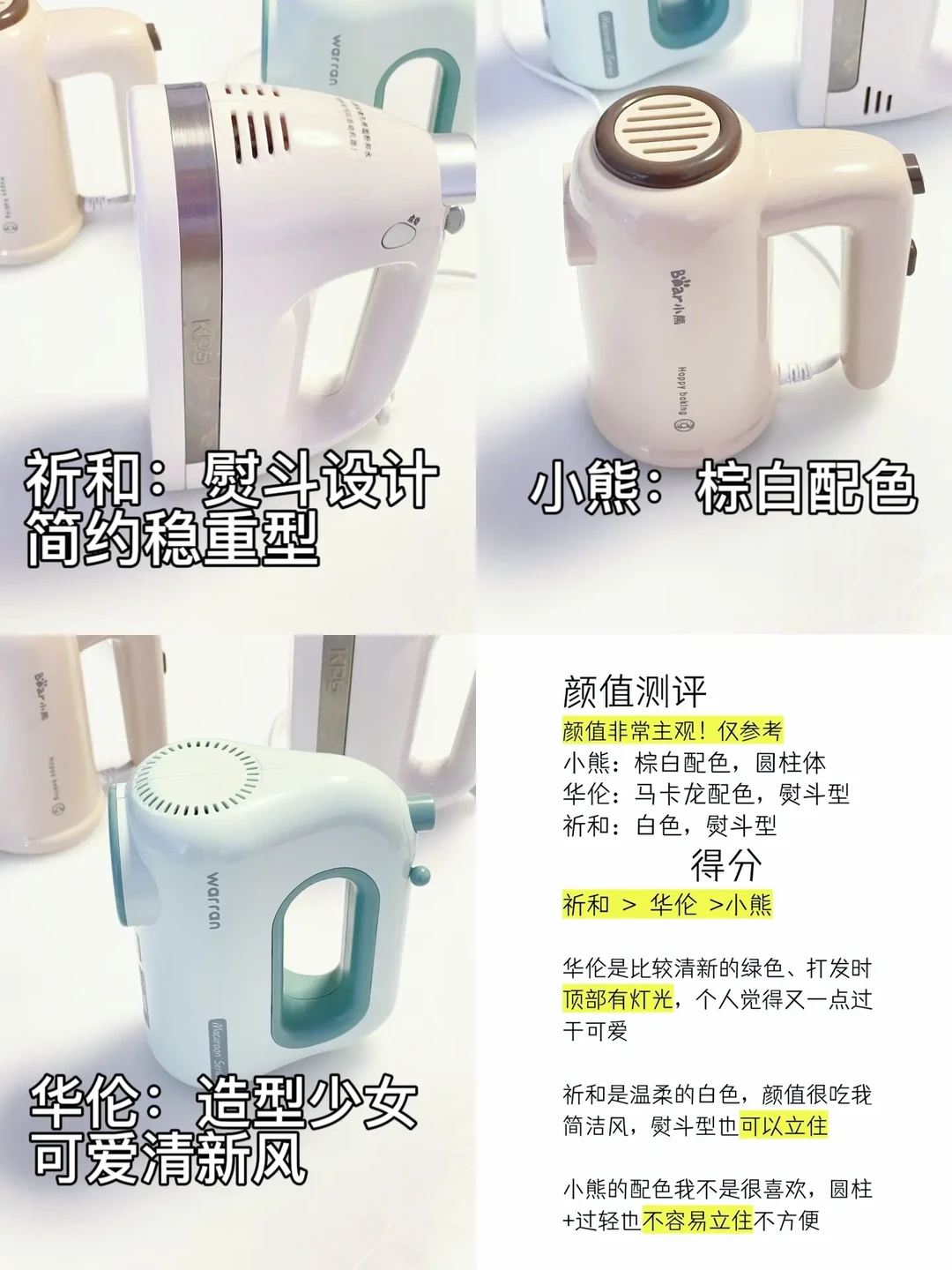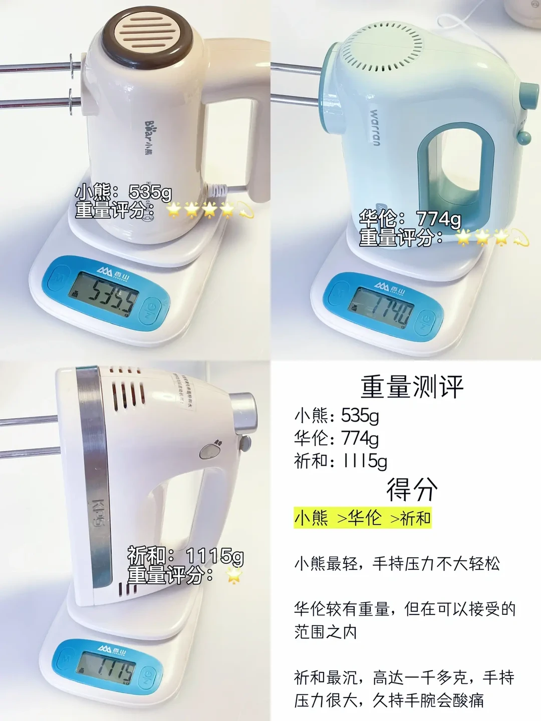 ‼️整体来说,华伦祈和的打蛋器都比较优秀、都可以满足日常需求。但祈和重量比较沉,女孩子手持会略有一些费力;华伦较轻,手持部分加了磨砂处理手感也会更好。基本可以符合烘焙打蛋器的需求