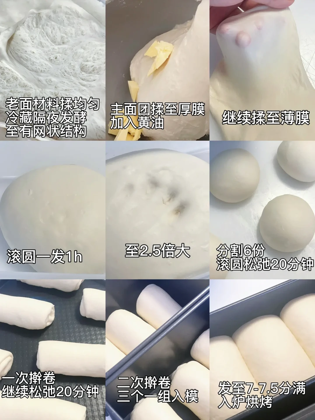 📎面团水量略大,新手请预留20-30g牛奶不加,根据面团吸水性自行调整,同时请严格控制面温,起缸温度26度左右为佳