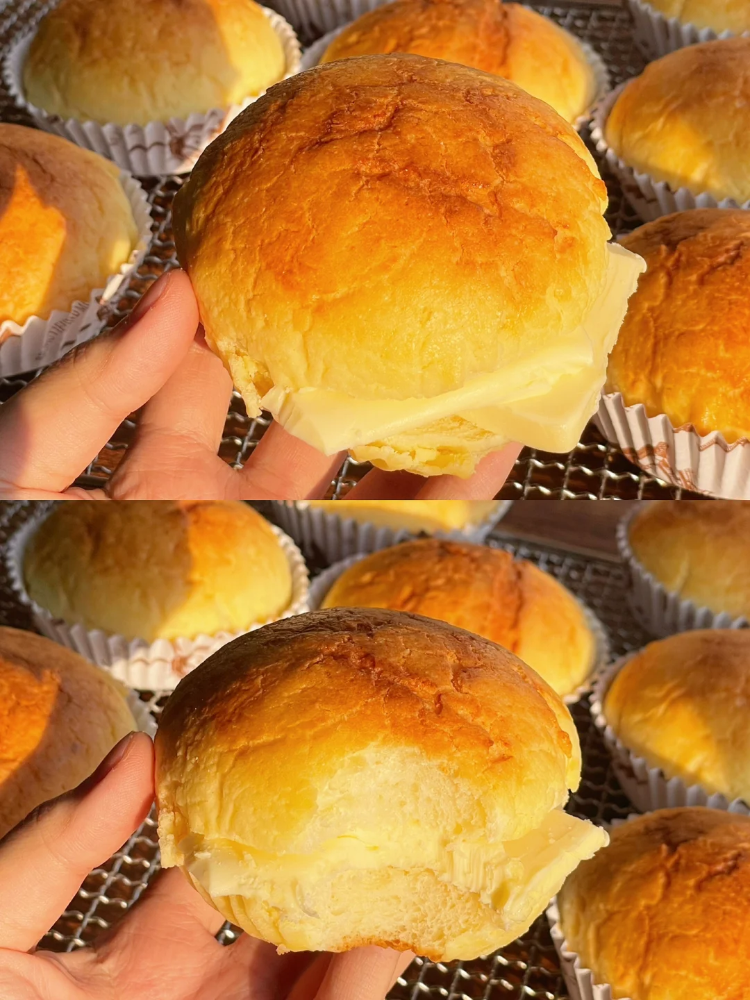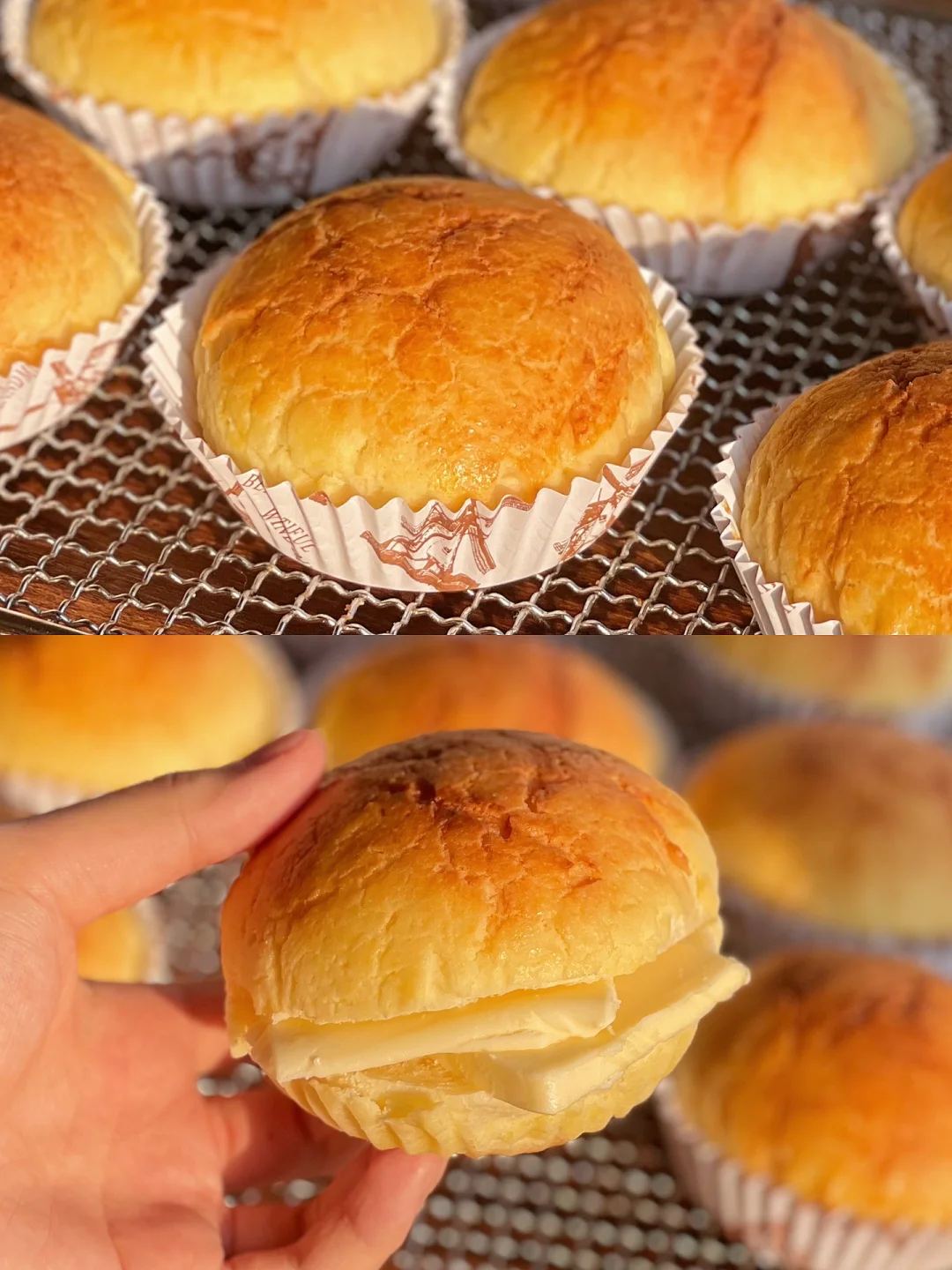 小的时候上课外班放学,麻麻总会带一个菠萝包给我吃。热腾腾的面包夹着半融化的黄油,搭配酥到掉渣的脆皮,一口下去奶香浓郁,幸福的味道~