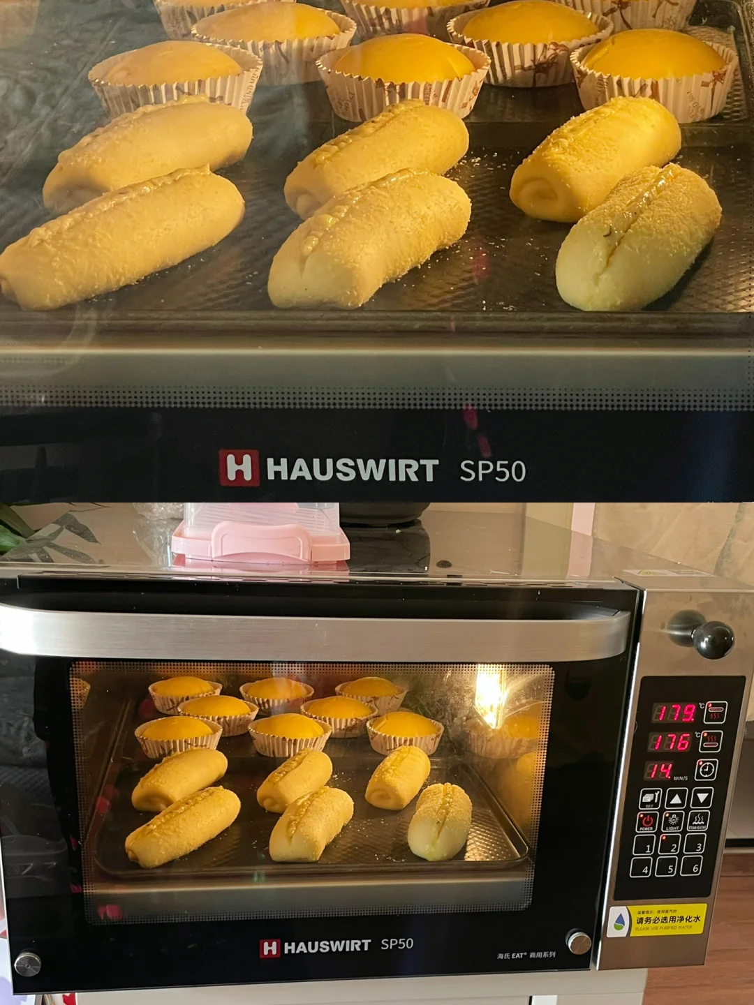 7⃣️发酵好的面团表面刷蛋液,送入海氏sp50商用平炉 烤箱上火200度/下火180度烘烤15分钟出炉