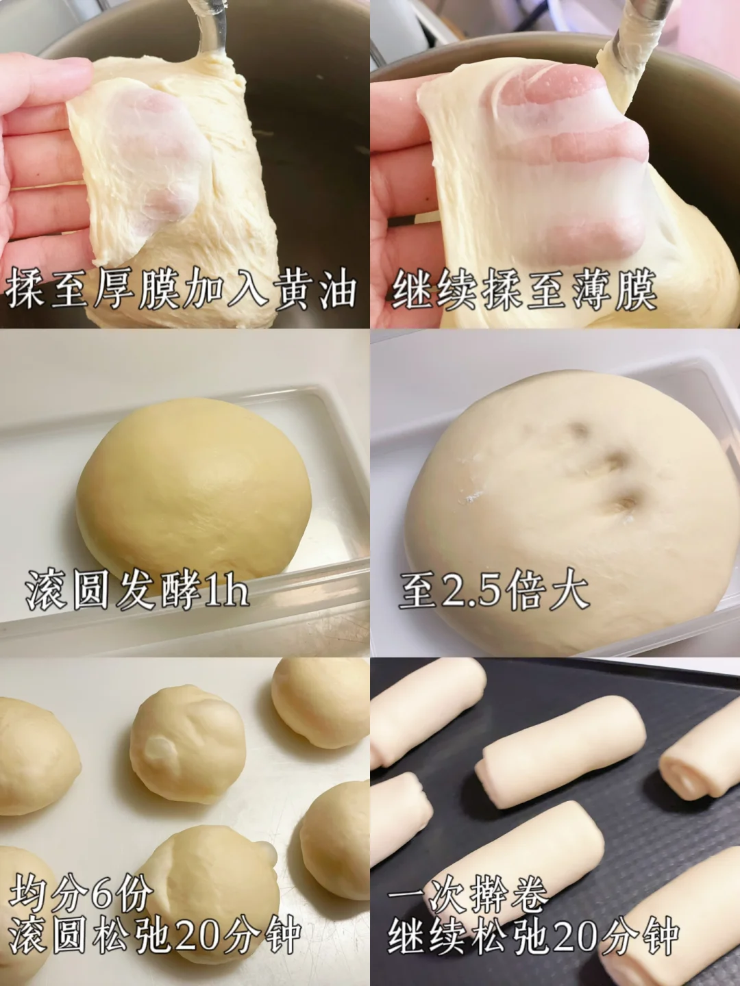 4⃣️发酵好的面团均分6份,滚圆继续松弛20分钟