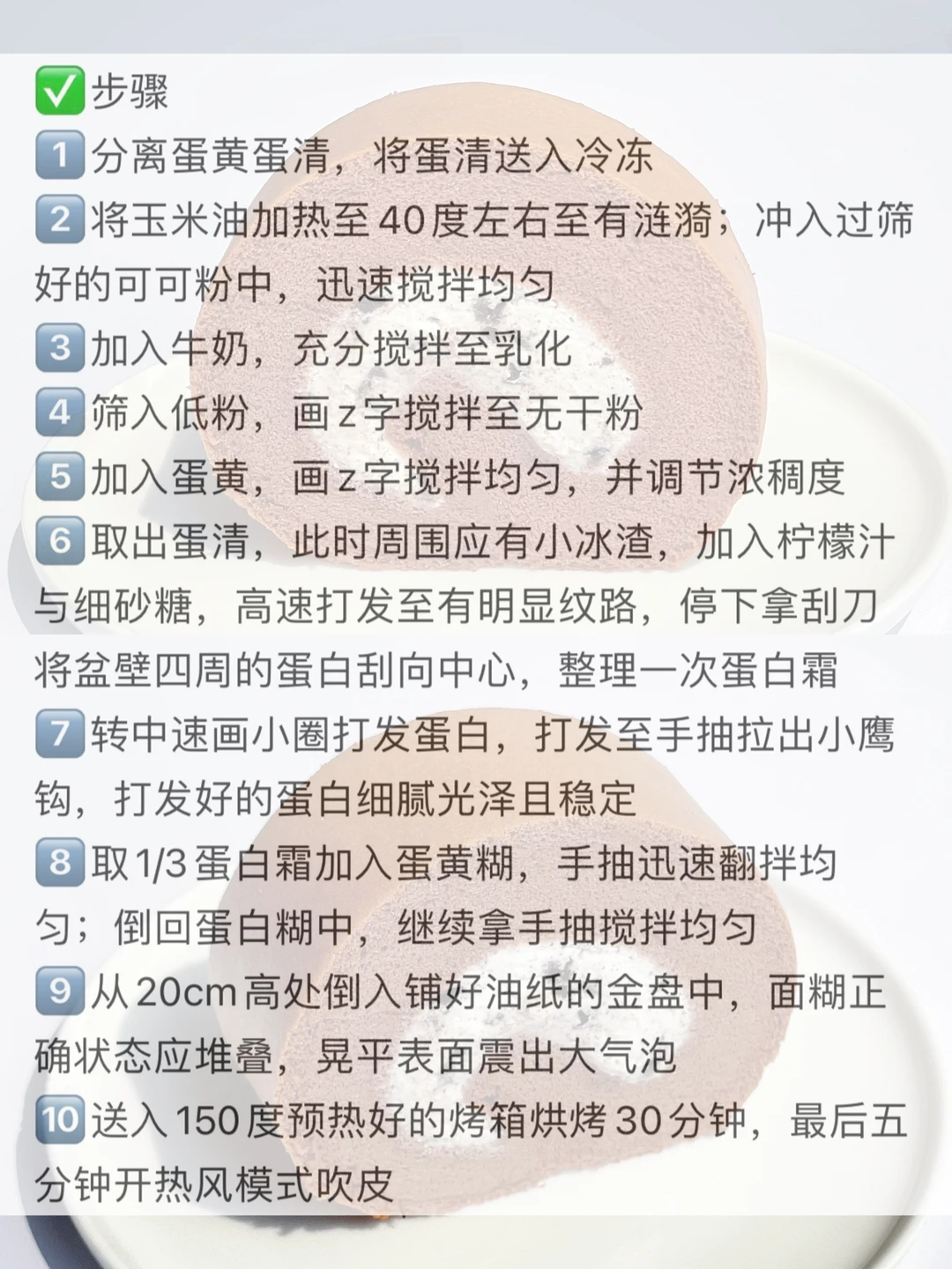 鸡蛋5个(带壳60g左右)|玉米油40g|牛奶75g|低筋面粉65g|细砂糖50g|柠檬汁3g|可可粉10g