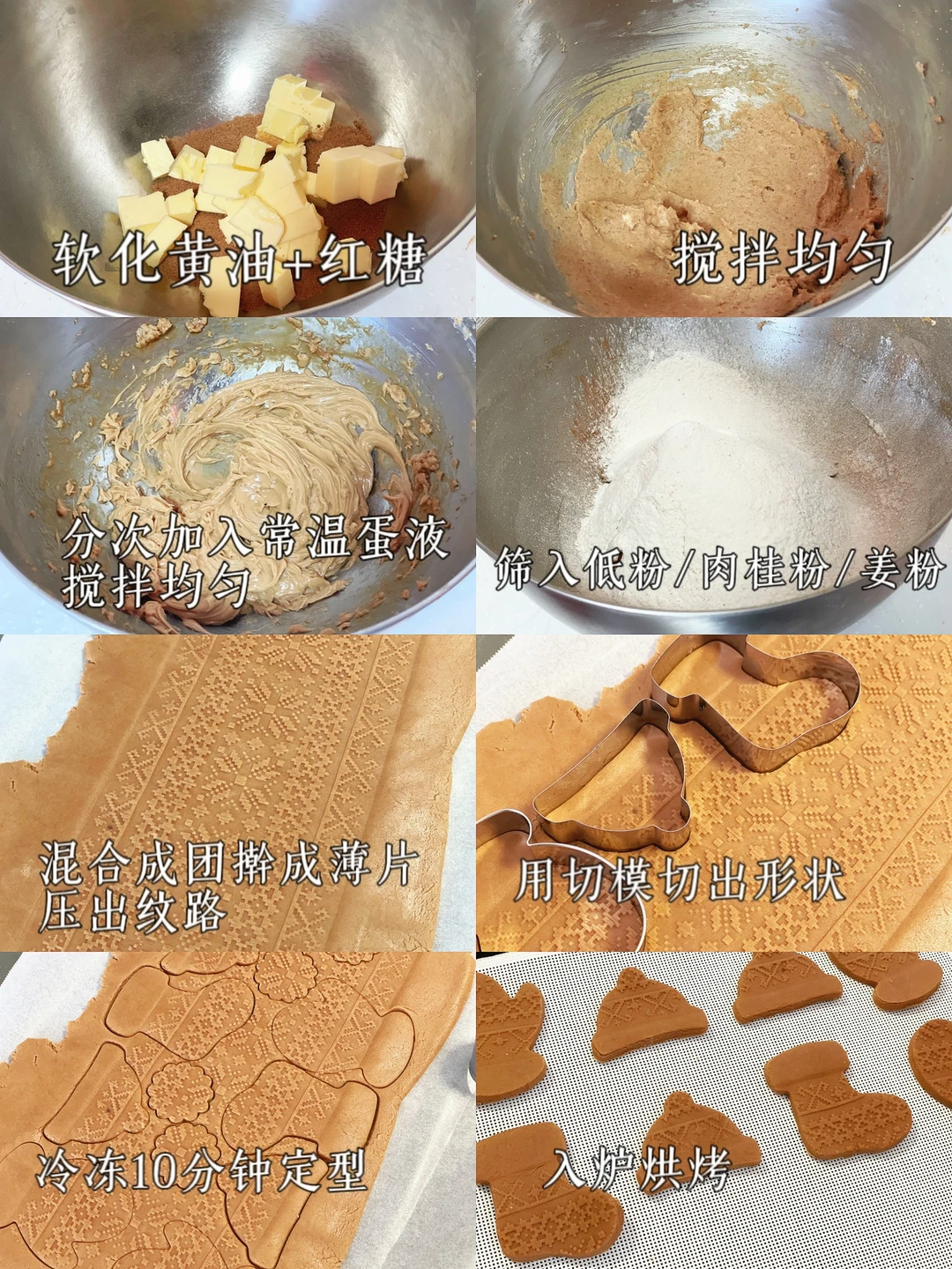 黄油90g|蛋液25g|低筋面粉140g|奶粉5g|姜粉1g|肉桂粉3g|红糖45g