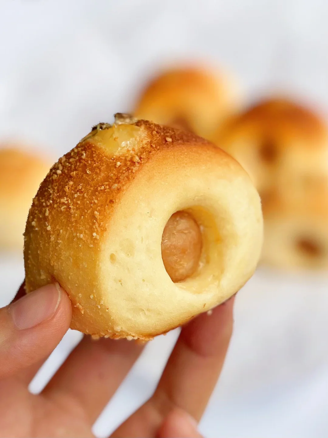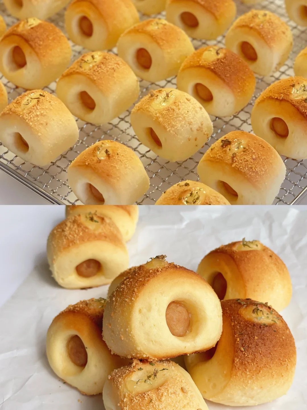 一口一个芝香四溢,中间是热狗肠,连着吃根本停不下来超满足🙋