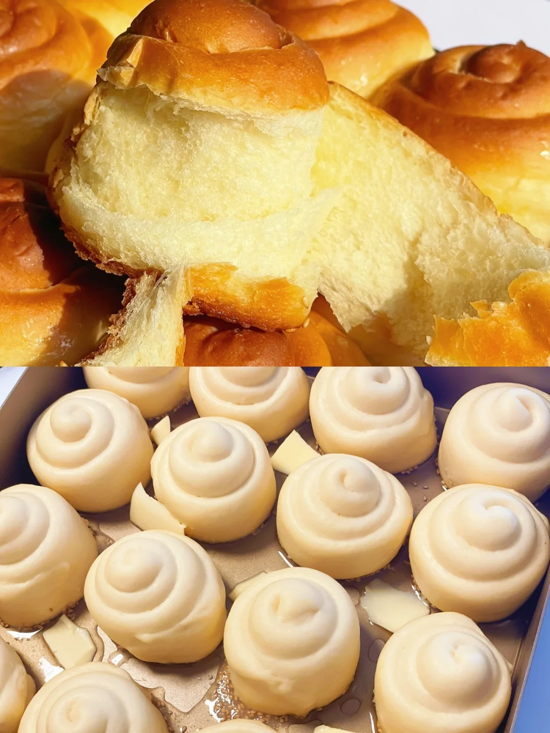 🥣主面团:高筋面粉340g|低筋面粉104g|奶粉20g|盐6g|细砂糖40g|耐高糖干酵母5g|全蛋液50g|牛奶160g|淡奶油90g|蜂蜜25g|黄油13g