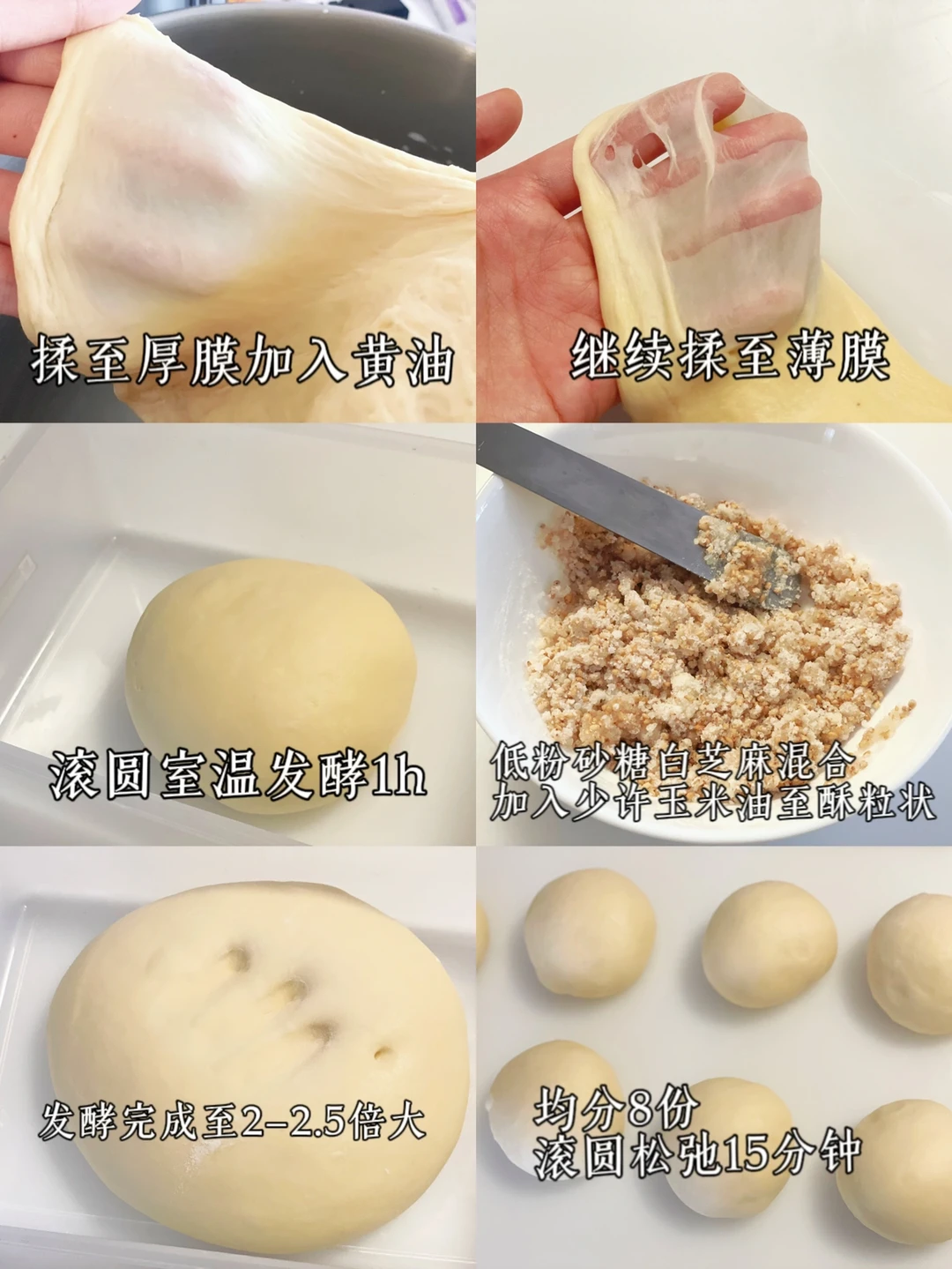 1⃣️提前准备脆底,白糖白芝麻低粉混合均匀,加入适量玉米油至酥粒状即可