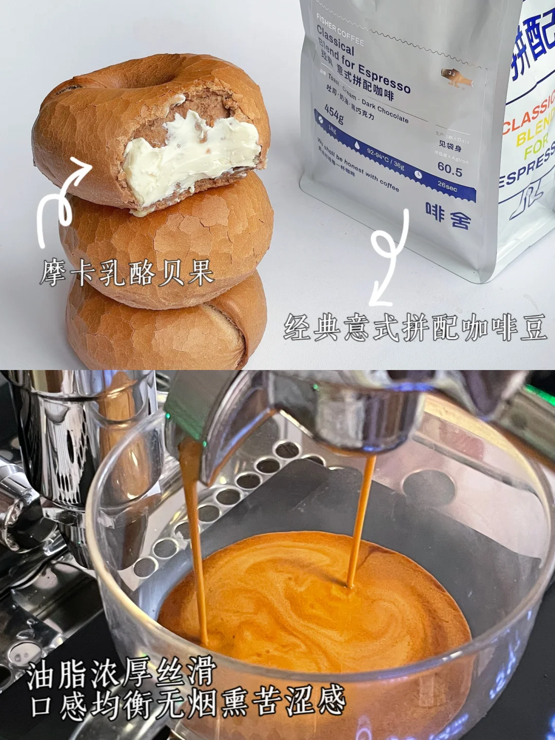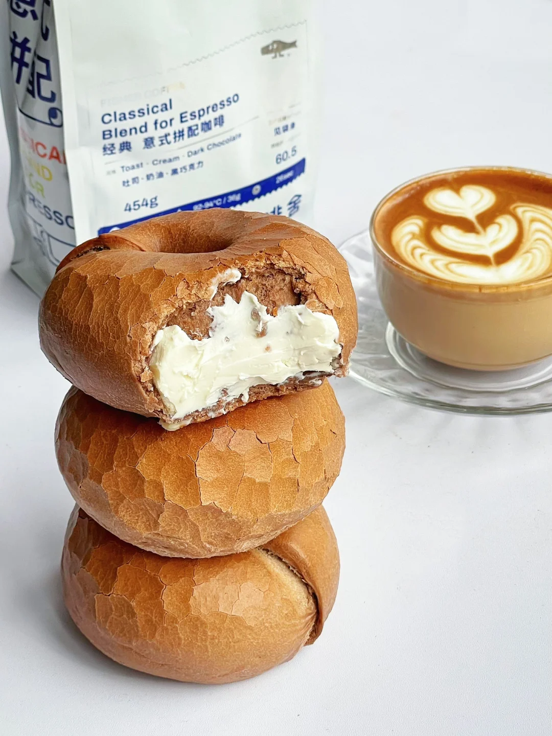制作一杯拿铁咖啡,浅浅拉个花~配上香浓的咖啡贝果,太惬意啦!