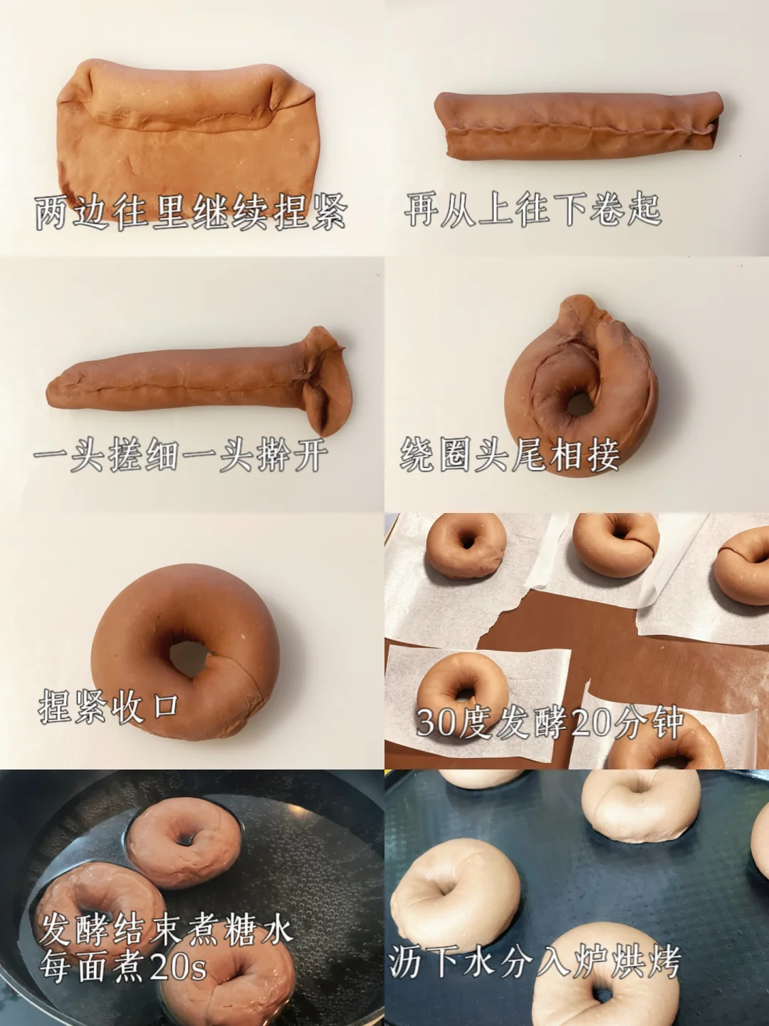 7⃣️发酵好的贝果正反面各煮20s,控干水分捞出