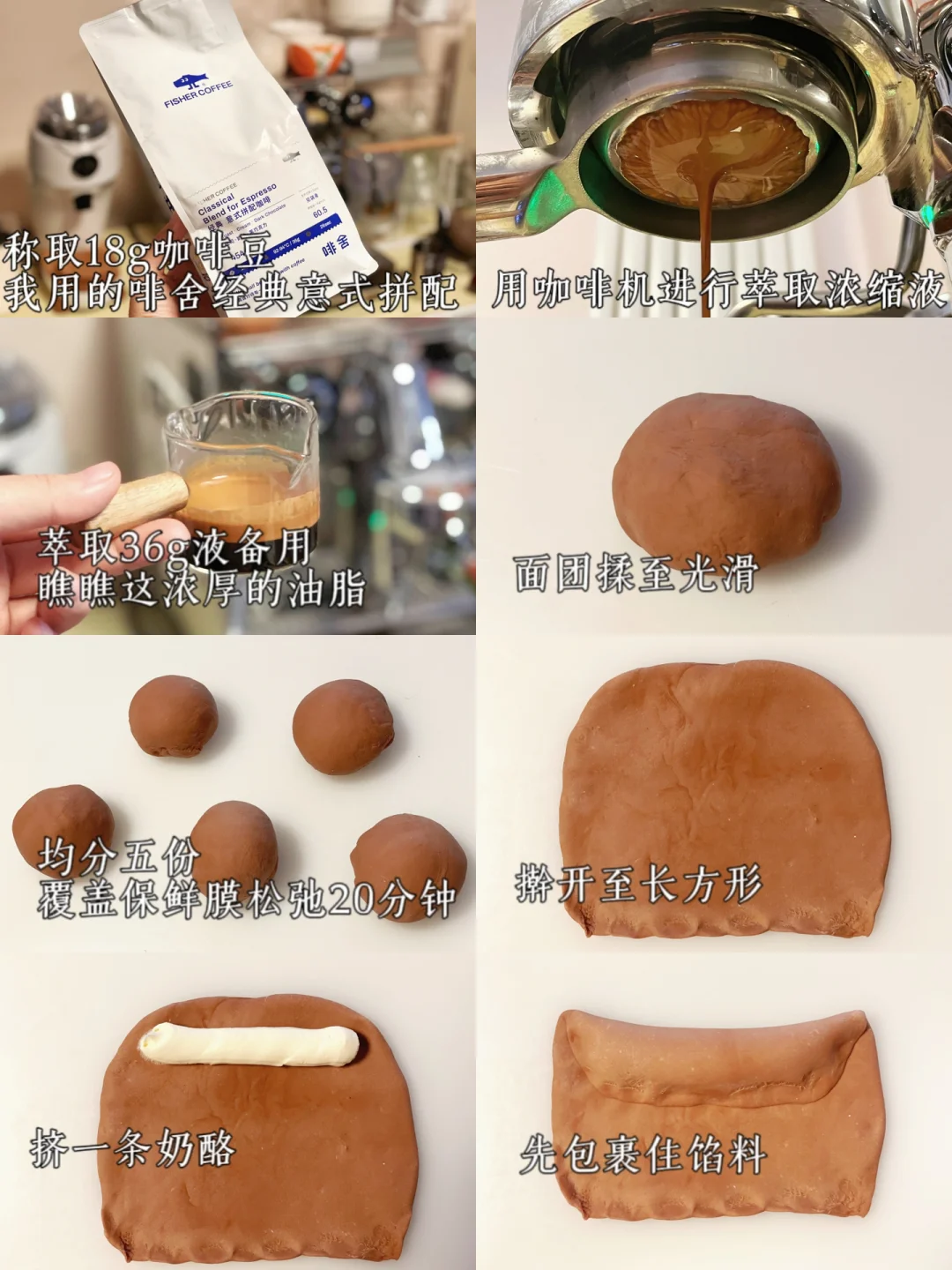 🥣贝果:250g高粉|5g奶粉|5g可可粉|2.5g盐|6g鲜酵母|110g水|36g咖啡浓缩液