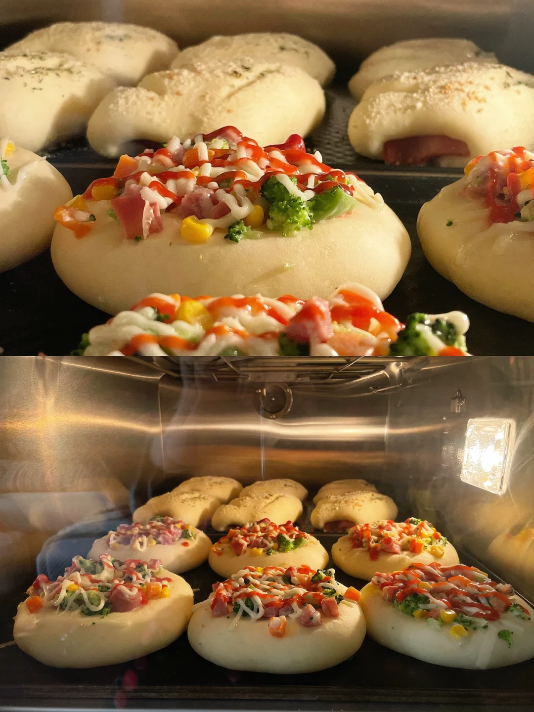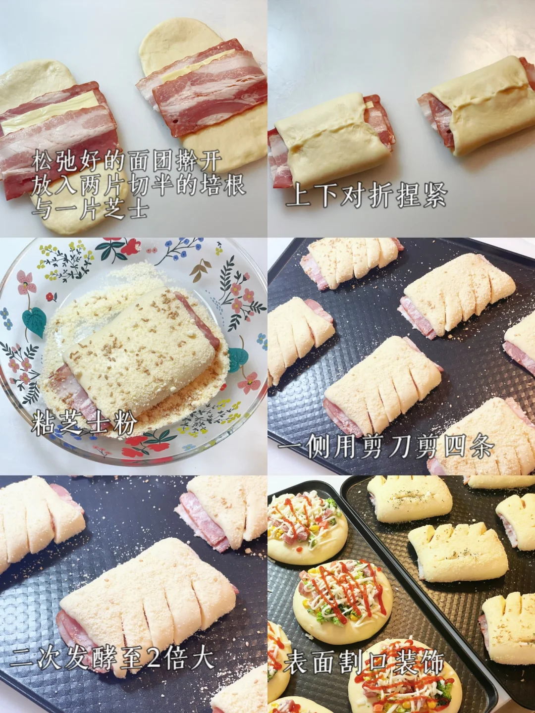 📎烘烤时间与温度请灵活调整,培根芝士包因裹芝士粉后期上色比较快,上色满意请加盖锡纸