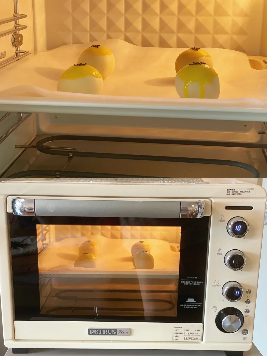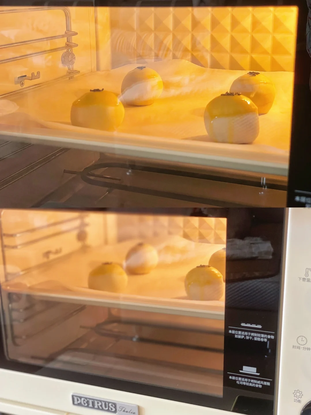 8⃣️刷蛋黄撒芝麻,送入180度预热好柏翠5400烤箱烘烤30分钟左右,表皮微黄就是烤透了,上色满意加盖锡纸
