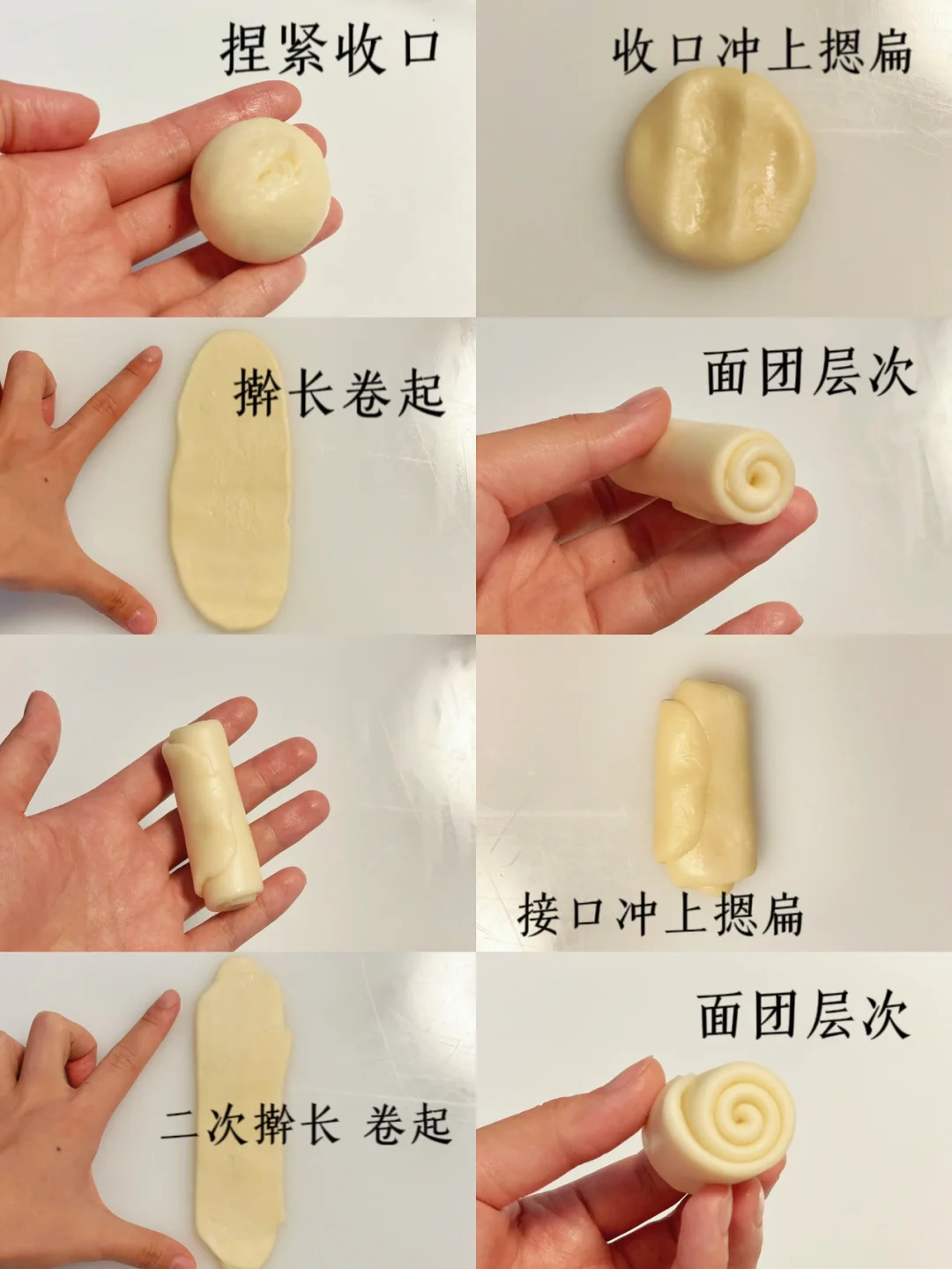 中秋节除了吃月饼,蛋黄酥也超适合~ 分享给大家自用n年的好配方 适合制作麻薯蛋黄酥,也是通用酥皮配方 制作出的蛋黄酥大约重量80g ✅配方 水油皮:中筋面粉205g|猪油75g|糖40g|水83g 油酥:低粉165g|猪油83g 内陷:咸蛋黄20个/油性豆沙馅约500g /麻薯200g ✅步骤 1⃣️水油皮所有材料混合,揉至表面光滑有延展性厚膜;包裹保鲜膜松弛30分钟 2⃣️蛋黄提前12h室温充分解冻 期间制作油酥,混合低筋粉猪油;刮刀刮细腻,包保鲜膜放冰箱冷藏备用 期间制作豆沙蛋黄馅;豆沙陷25克;豆沙摁扁上面放10g麻薯,在上面放蛋黄搓圆,盖保鲜膜防干备用。 3⃣️取出松弛好的水油皮与油酥;平分20份。水油皮约20g左右,油酥约12g左右。 4⃣️水油皮略微拍扁;包裹油酥,类似包包子手法用虎口收口,收口请捏紧 5⃣️松弛15分钟;收口朝上略微拍扁,擀面杖上擀一次下擀一次,请勿来回擀,卷起 6⃣️松弛15分钟;卷起的尾部朝上略微拍扁,上擀一次下擀一次,请勿来回擀,卷起 7⃣️松弛15分钟;中间拇指摁一下;两头对折再压扁;上下左右各擀一次;呈圆形。底部先放麻薯再放入豆沙蛋黄馅,用虎口往上推收口,收口捏成揪揪,防爆口。 8⃣️刷蛋黄撒芝麻,送入175度预热好的烤箱烘烤35分钟左右,表皮微黄就是烤透了,上色满意加盖锡纸 ✅小贴士 📎最适宜温度为21-22度左右,天热请开空调,否则皮容易出油也容易混酥 📎松弛请不要忽略,这样才不容易破酥 📎擀卷请勿来回擀会混酥;上擀一次下擀一次 📎尽量保证油皮油酥软硬度一致;和面时请按照吸水性自行调节 📎最后擀开可适当加一点粉防粘;这样皮就不会被手捻破,收口捏成一个揪再摁下去不会爆口 📎操作过程中全程覆盖保鲜膜;水油皮很容易干掉做好保湿,馅料也盖保鲜膜这样蛋黄的油才不会挥发干掉 📎麻薯不要多,否则会爆;馅料一定要油性,太湿容易吐陷 📎出炉皱皮就是没熟透,回炉继续考,但也无法改变皱皮