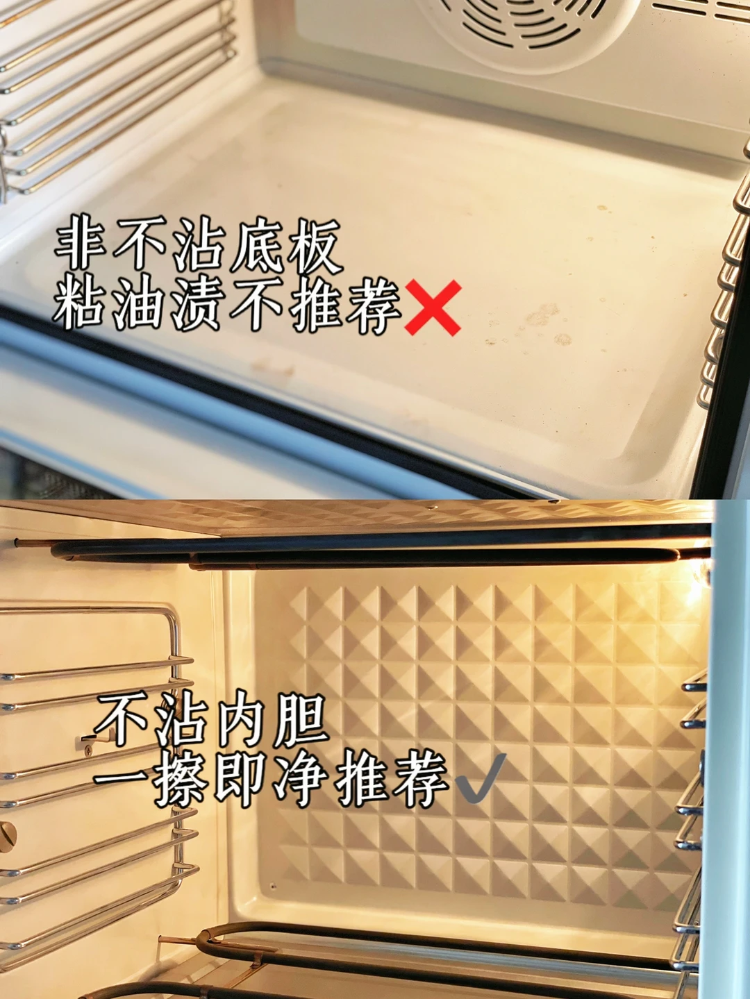 ✔️尽量选不沾/搪瓷/陶瓷内胆:颜色好看,便于清洁。烤箱使用难免有油污等,陶瓷内胆便于清洁,一擦即净;不沾内胆清洁起来非常麻烦,最好不选择!