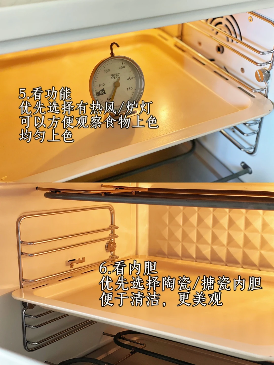 ✔️尽量选有炉灯/热风等:有炉灯可以更清晰观察食物上色;热风则可以让食物上色更均匀