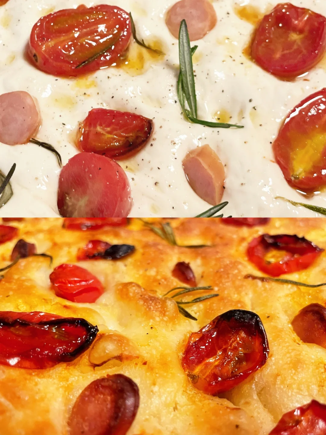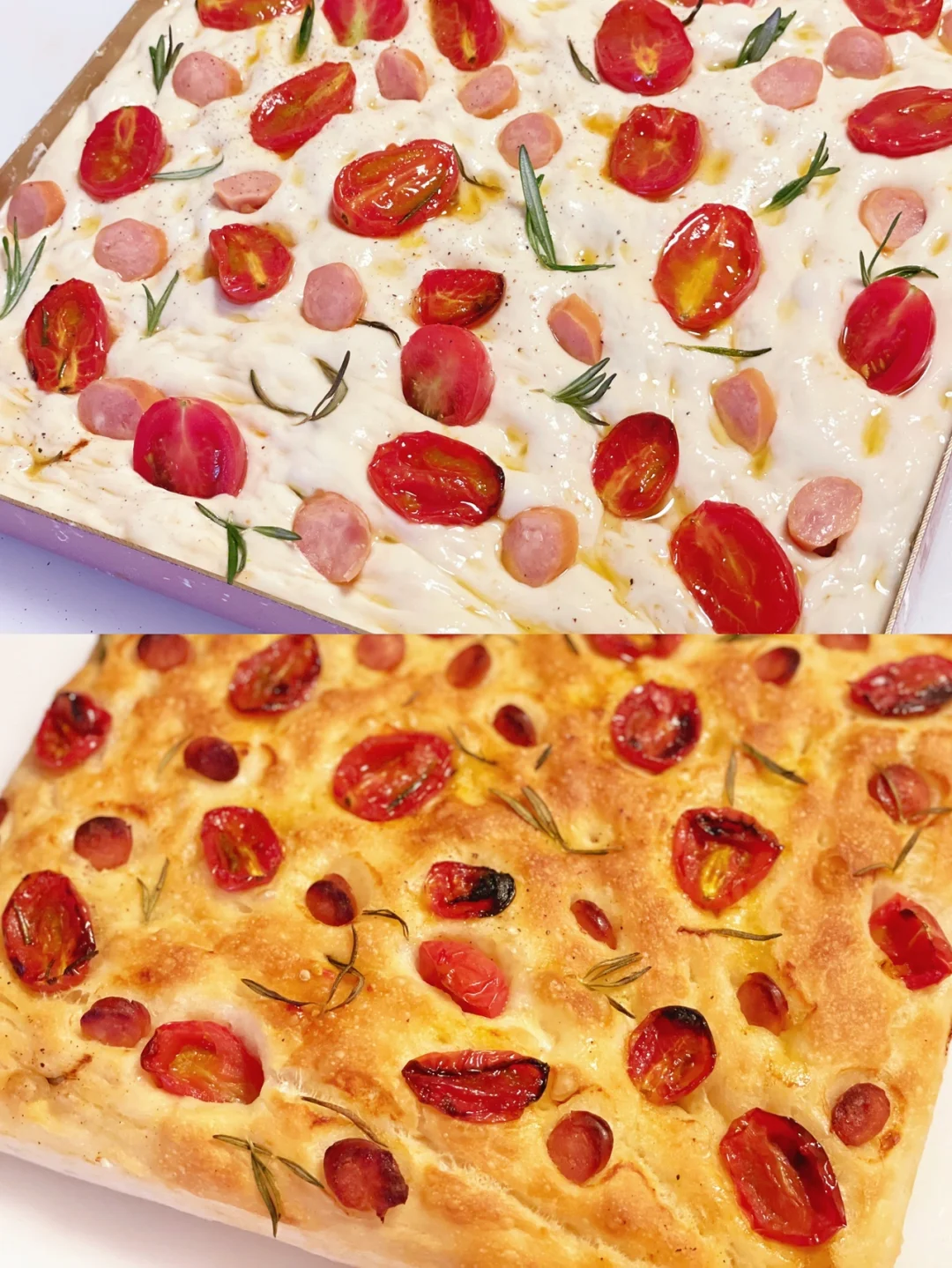 📎我用了油浸番茄/新鲜番茄/德肠/迷迭香进行装饰,可以放上任意喜欢的食材