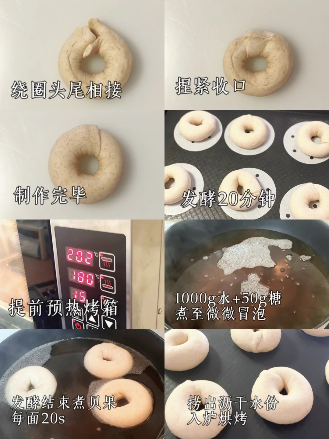 又用50克全麦粉替换了原本的高粉;做了全麦口味的贝果;两款配方附上‼️姐妹也可以自由发挥⚠️制作前请看小贴士