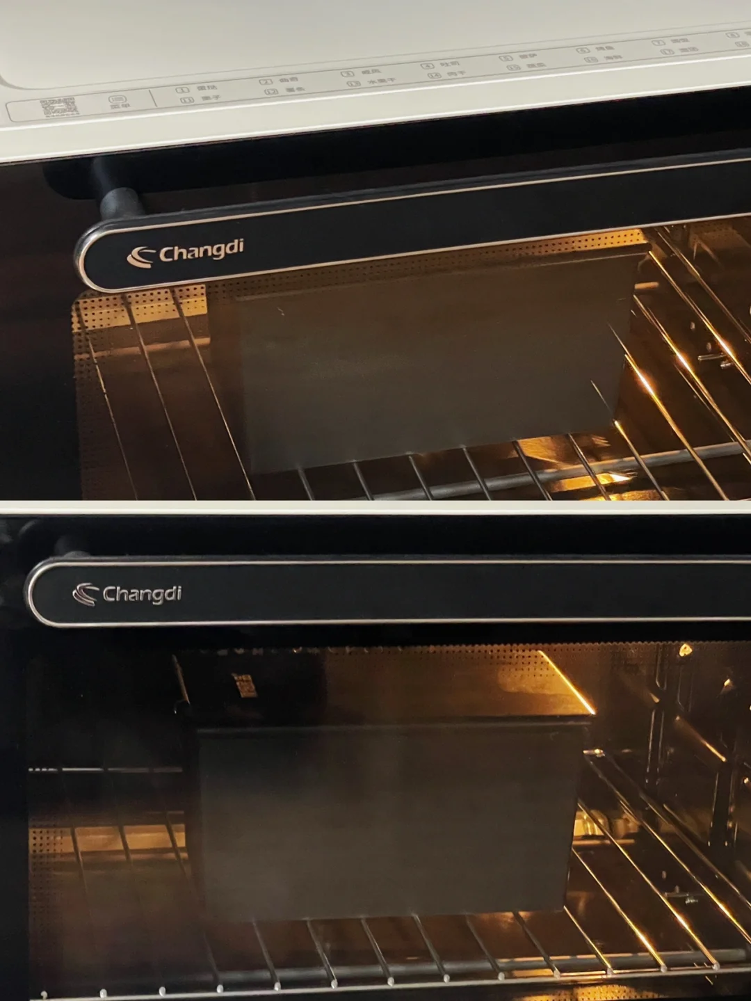 5⃣️送入180度预热好长帝大白鲸烤箱烘烤33分钟,烤色完美受热均匀