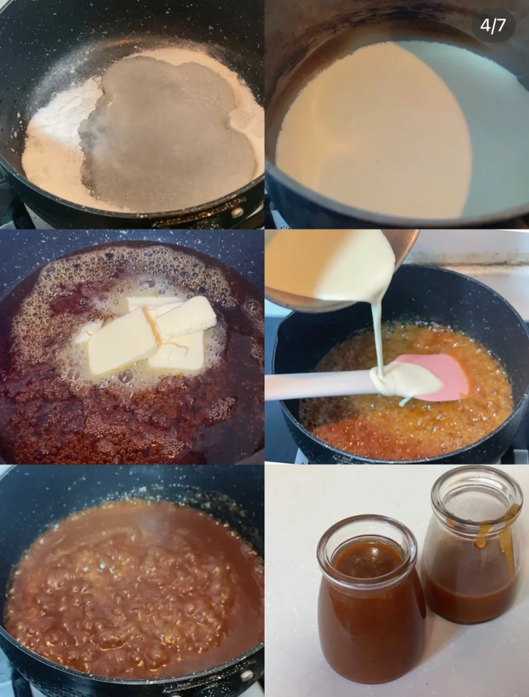 2⃣️牛奶加入焦糖酱小火煮至微微沸腾冒小泡