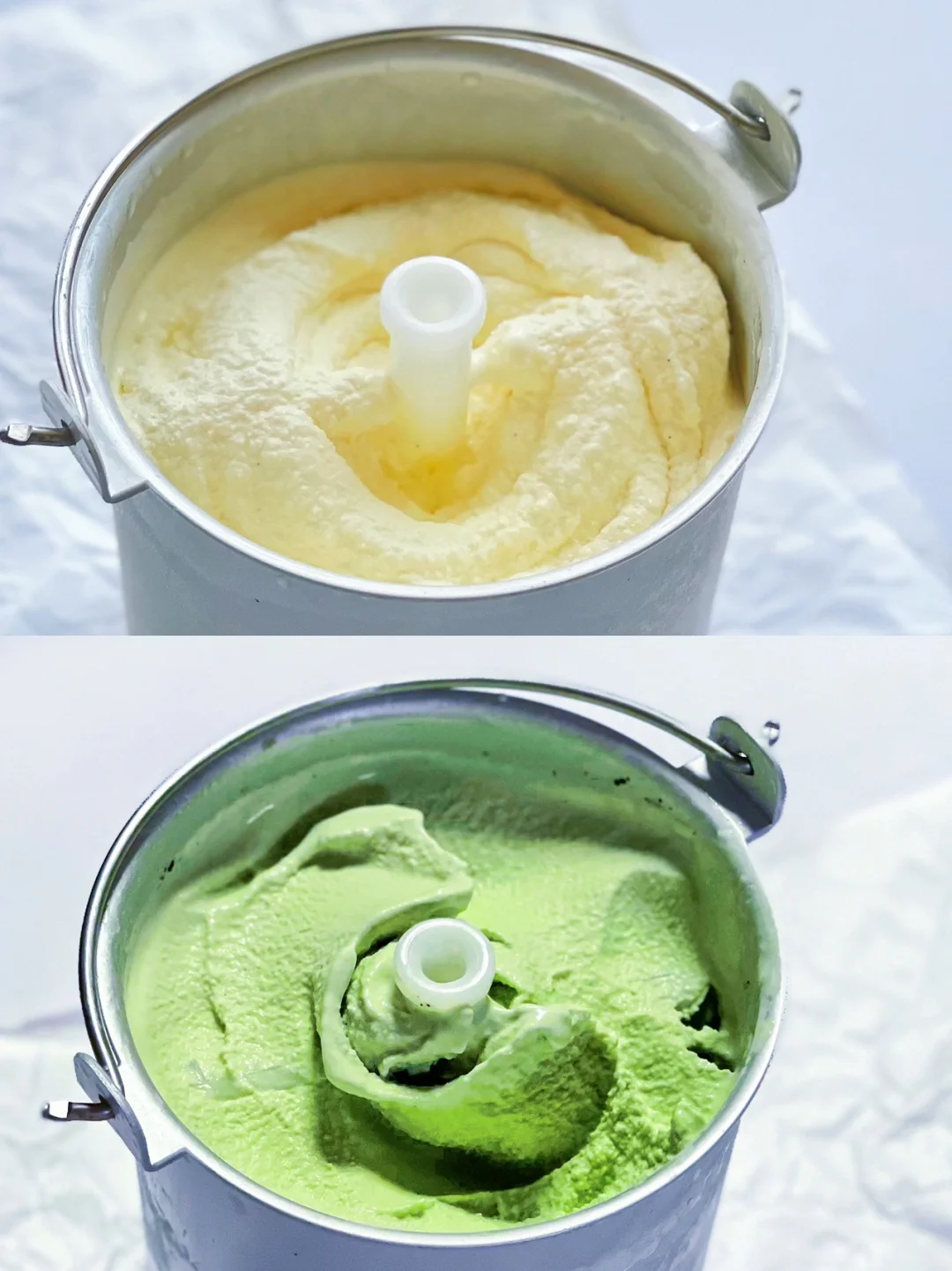 抹茶冰淇淋🍧:蛋黄2个|细砂糖30g|牛奶120g|淡奶油180g|抹茶粉3g