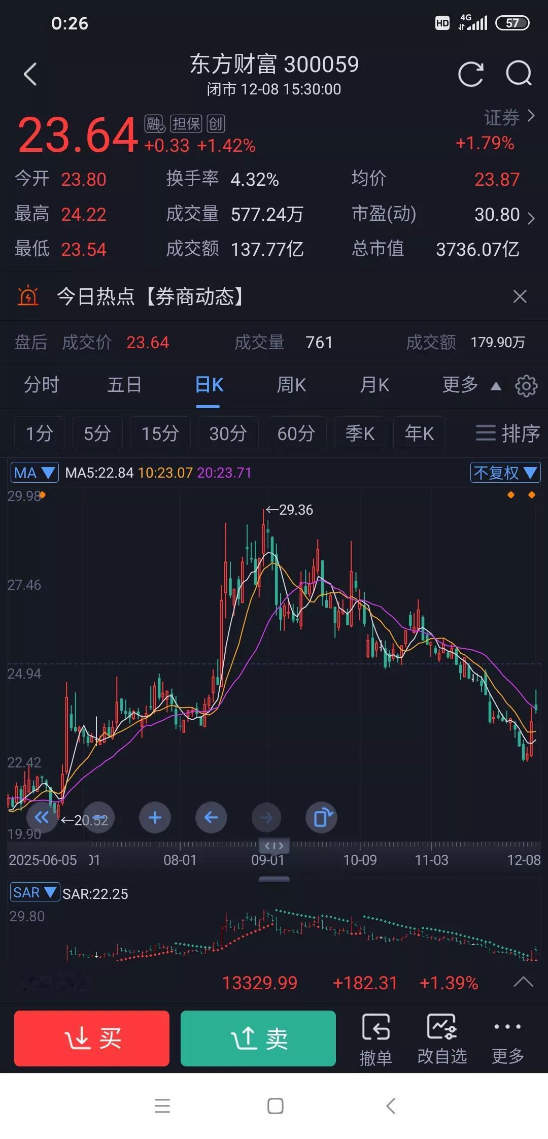 东方财富24.4以下就是机会? 前段时间大股东通过询价转让 2.378 亿股,16 家机构以 24.4 元/股全部接盘,像易方达基金就花 34.52 亿元拿了 1.41 亿股,还有瑞银,摩根大通这些国际巨头,这似乎说明机构挺看好公司。 像这些投行巨头花那么钱买,难道不会调查评估分析好吗,而且会从各个方面去调查评估,敢在这个价格买,肯定是觉的值这个价格,对于公司的基本面和前景认可。 短期走势谁也无法预测,但长期看肯定值这个价格,特别是在牛市,券商涨起来可是一点不含糊的,就看你能不能坚持住了。