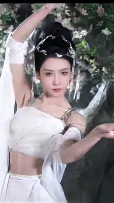 上联:翠柳垂堤听水静 下联:雪梨倚墙戏吻风姿 下图片中的佳丽,穿一袭白裙,貌