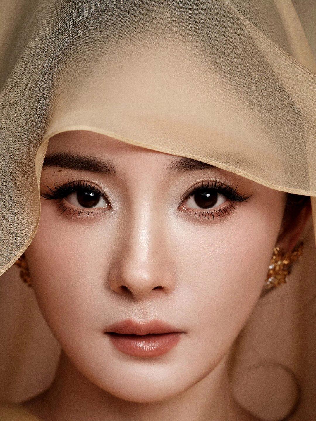 杨幂是“自带柔光的贵气脸”啊! 裸杏色妆面衬得皮肤像剥了壳的鸡蛋,眼尾那抹细碎金闪和唇上的透亮釉光,把“清透”和“精致”掐得刚刚好——薄纱遮面那帧更是绝,温柔里裹着点冷艳,这就是雅诗兰黛全球代言人的适配度吗!
