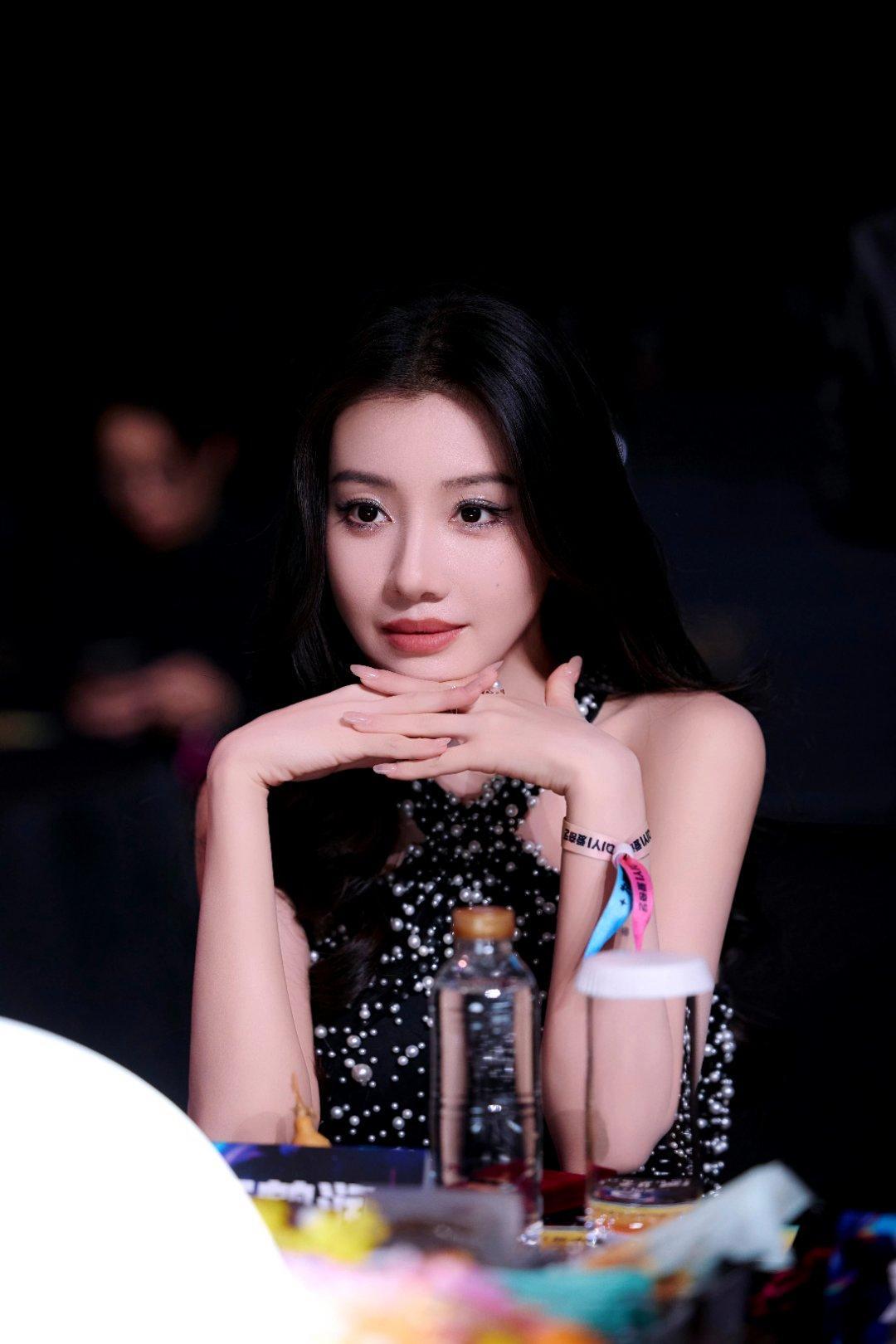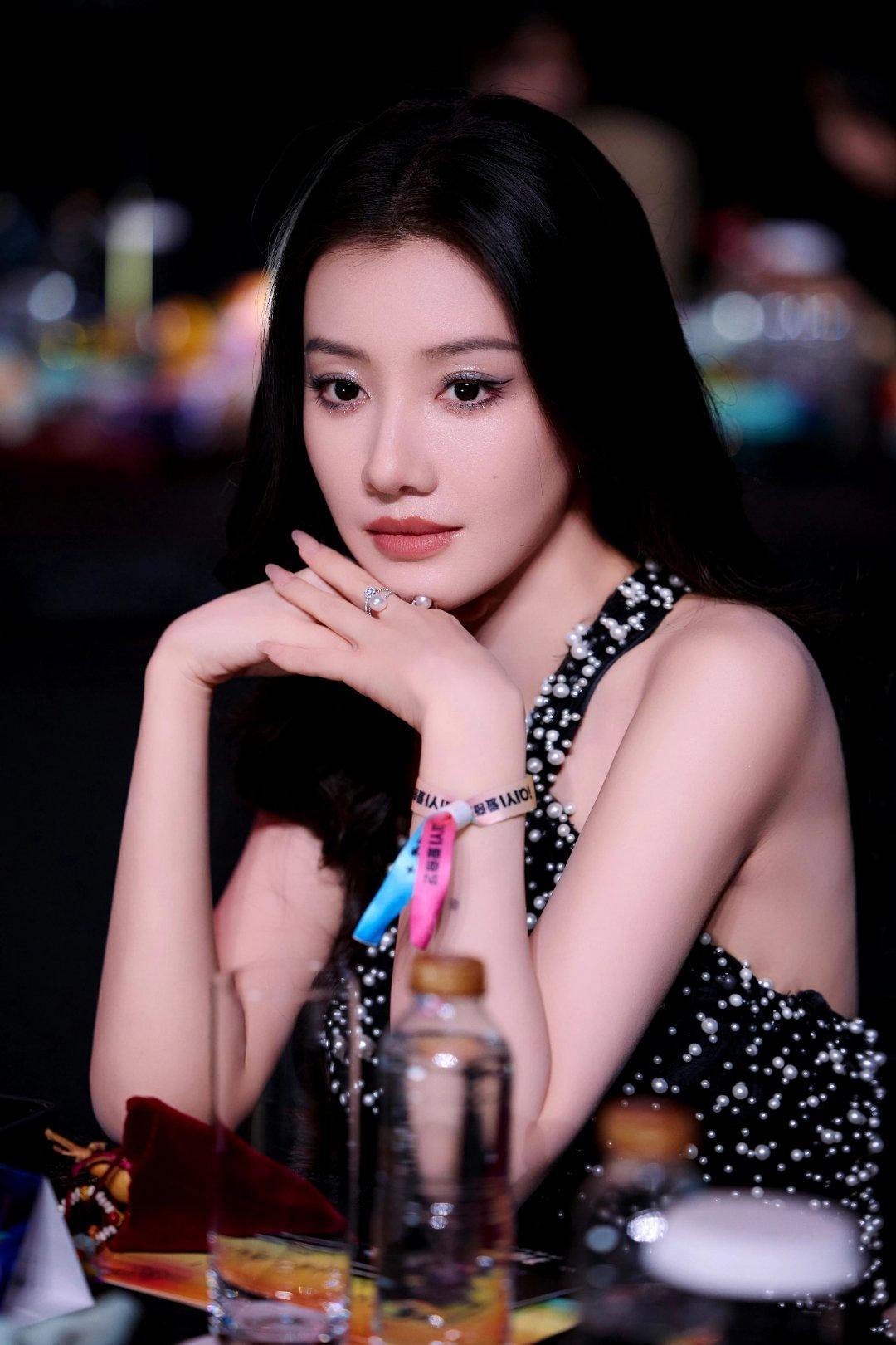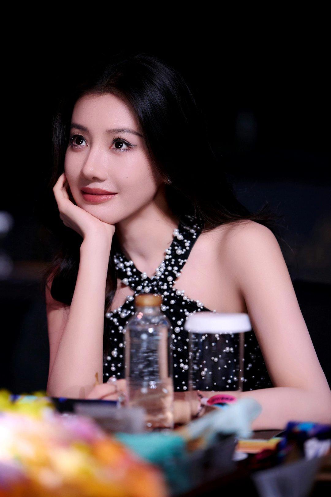 王鹤润的怼脸生图啊!一袭黑裙缀满珍珠,交叉挂脖设计露肩又显贵气,衬得肩颈线条又白又直,自带柔光滤镜的皮肤在暗场里直接发光