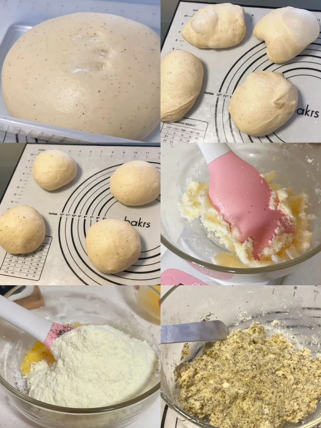 🥣奶酥馅:黄油50g|蛋液37g|糖60g|奶粉100g|伯爵茶4g