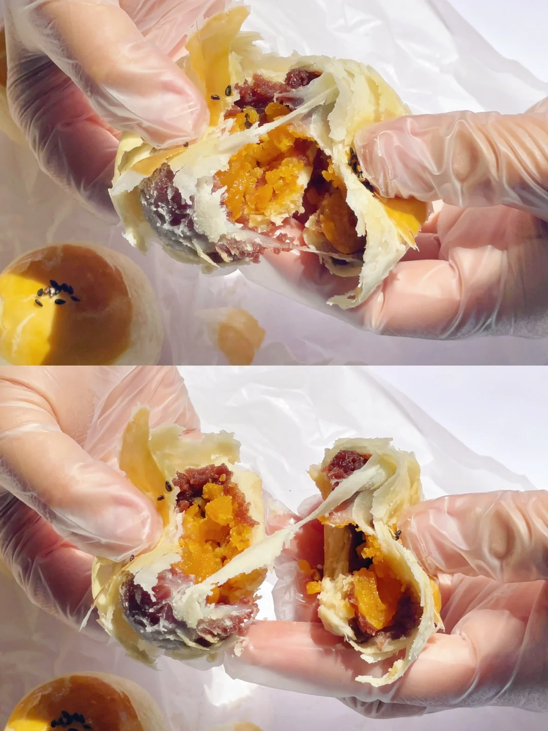 📎尽量保证油皮油酥软硬度一致;和面时请按照吸水性自行调节!
