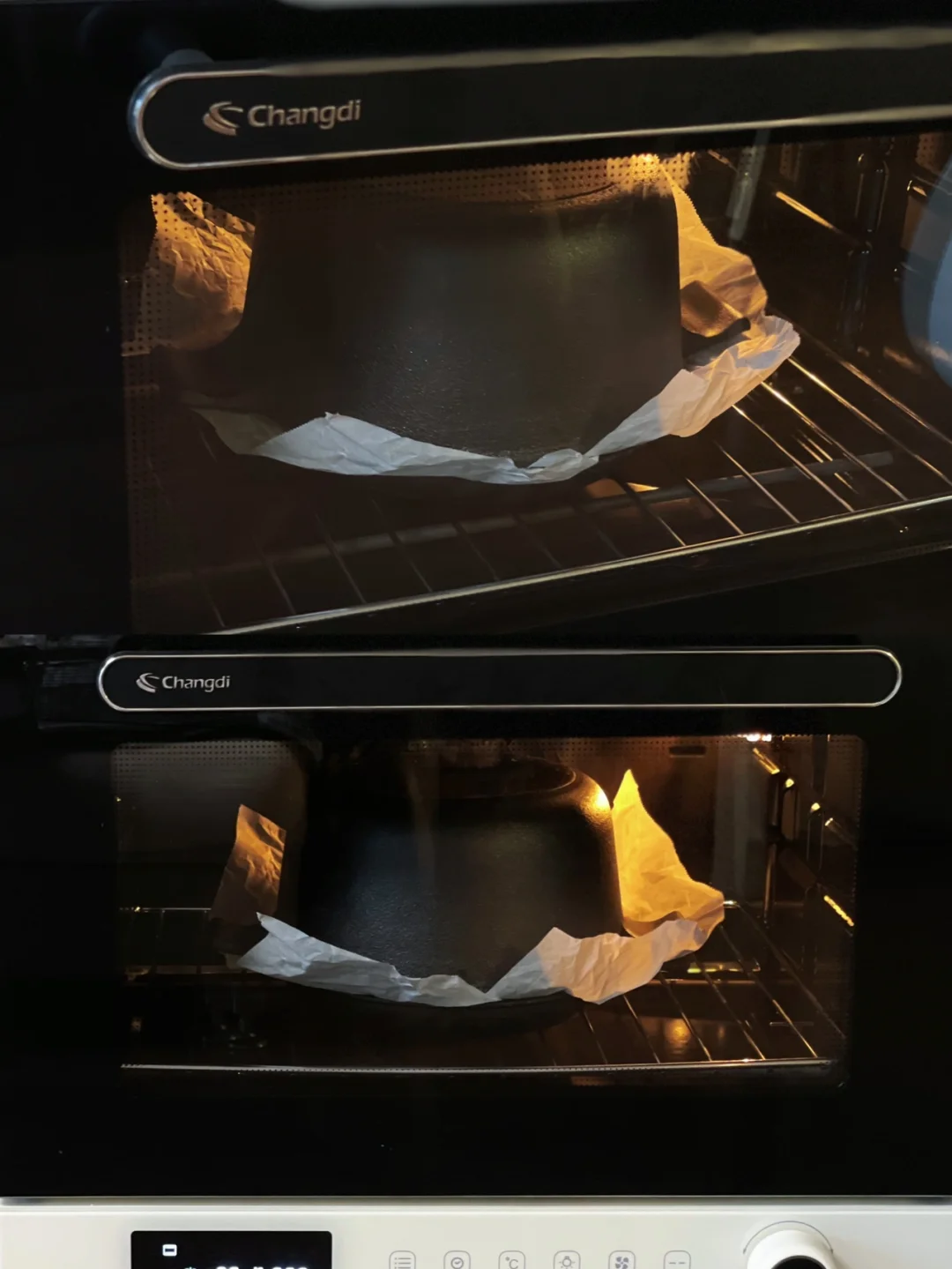 9⃣️长帝大白鲸烤箱220度烘烤20分钟后取掉铸铁锅盖子继续烘烤10分钟让表面上色后出炉,家用烤箱也可以出很漂亮的小耳朵