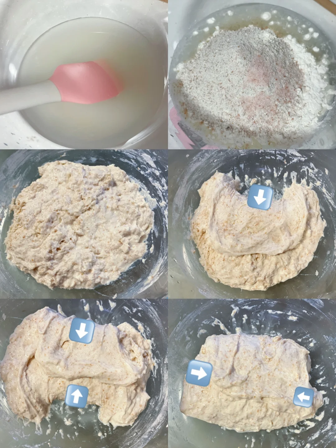 5⃣️三次折叠,保鲜膜密封室温发酵2h后送入冰箱冷藏隔夜发酵13h