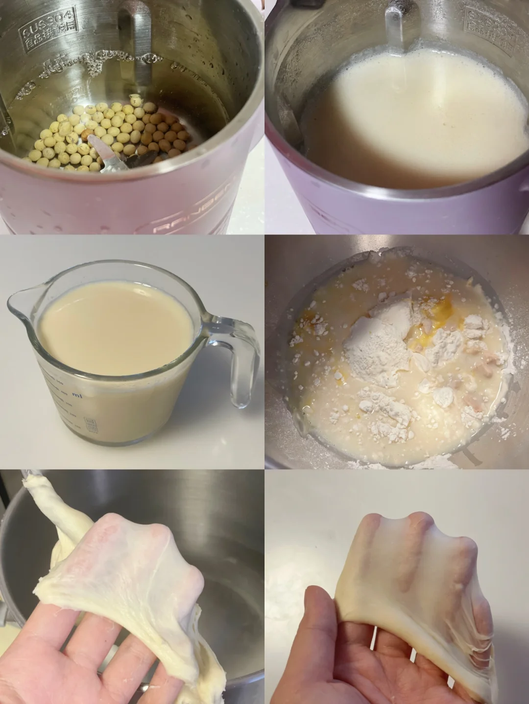 🥣面团:高筋面粉200g|自制豆浆135g|奶粉8g|盐2.5g|糖20g|鲜酵母6g(可替换耐高糖干酵母2g)|全蛋液15g|黄油10g