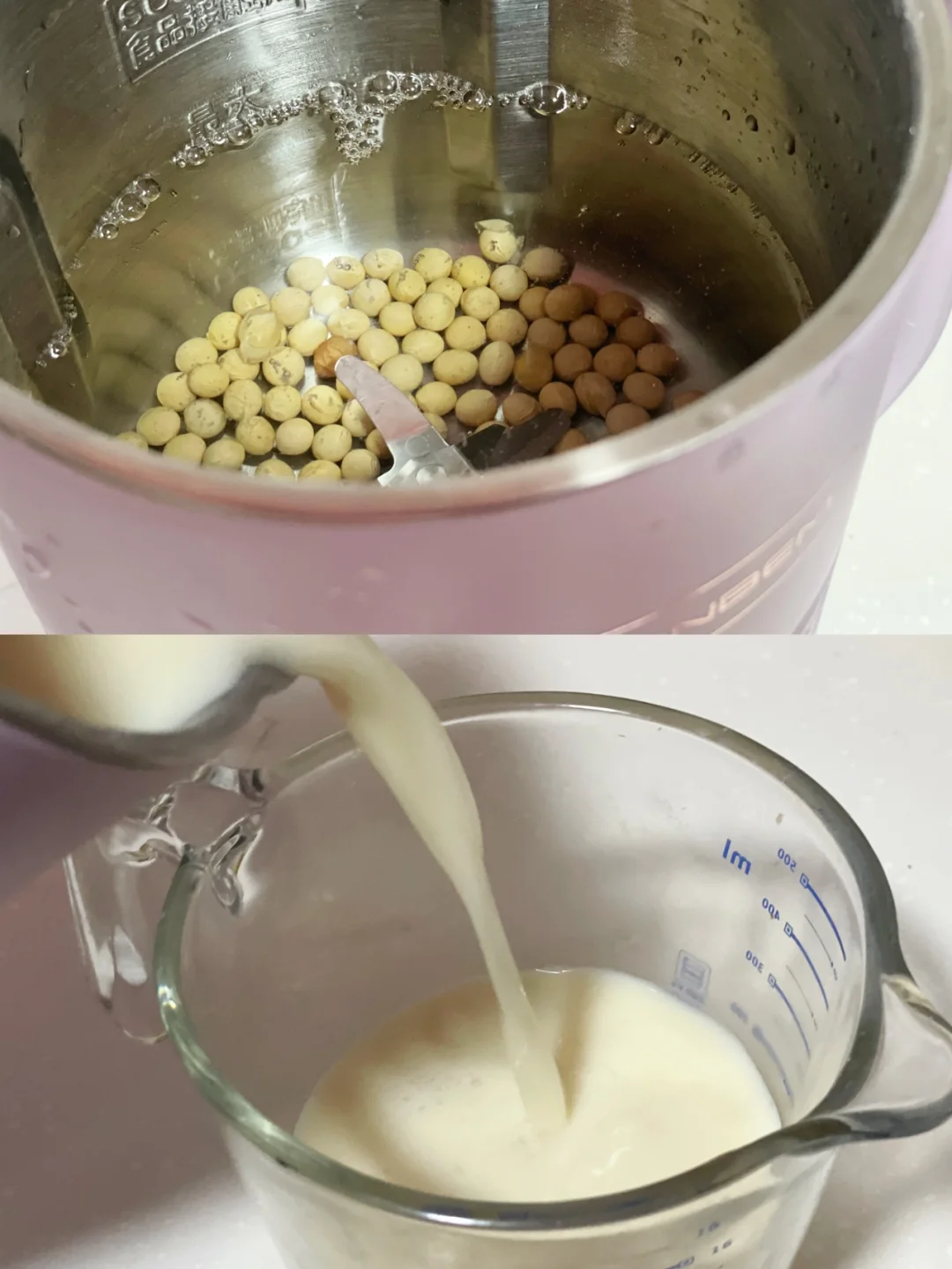 1⃣️提前一宿制作豆浆,瑞本破壁机加入黄豆与水打成豆浆,放冰箱冷藏备用
