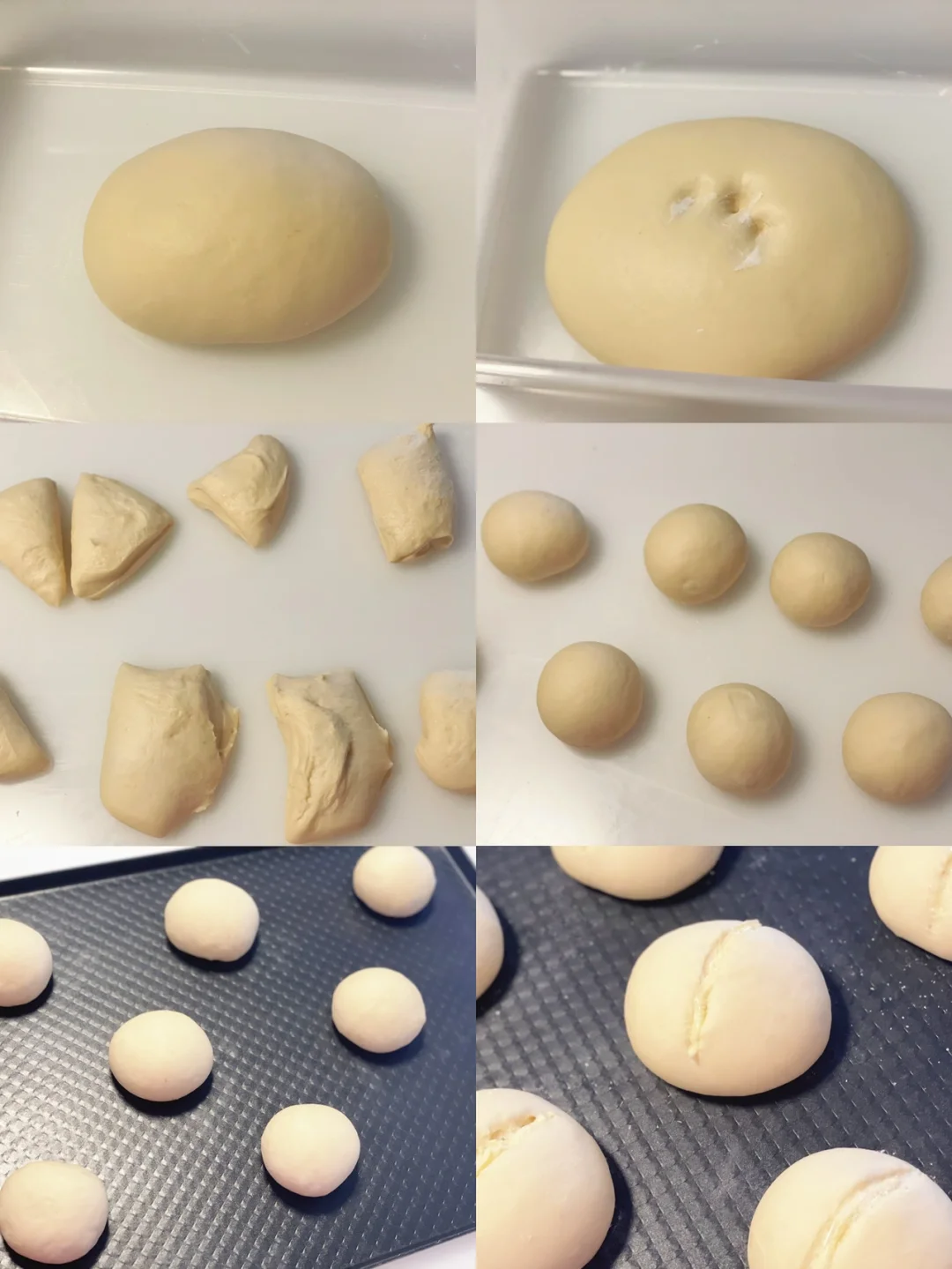 5⃣️拍扁再次滚圆,放入烤盘送入35度/70湿度发酵30分钟左右至两倍大,轻摁表面可缓慢回弹