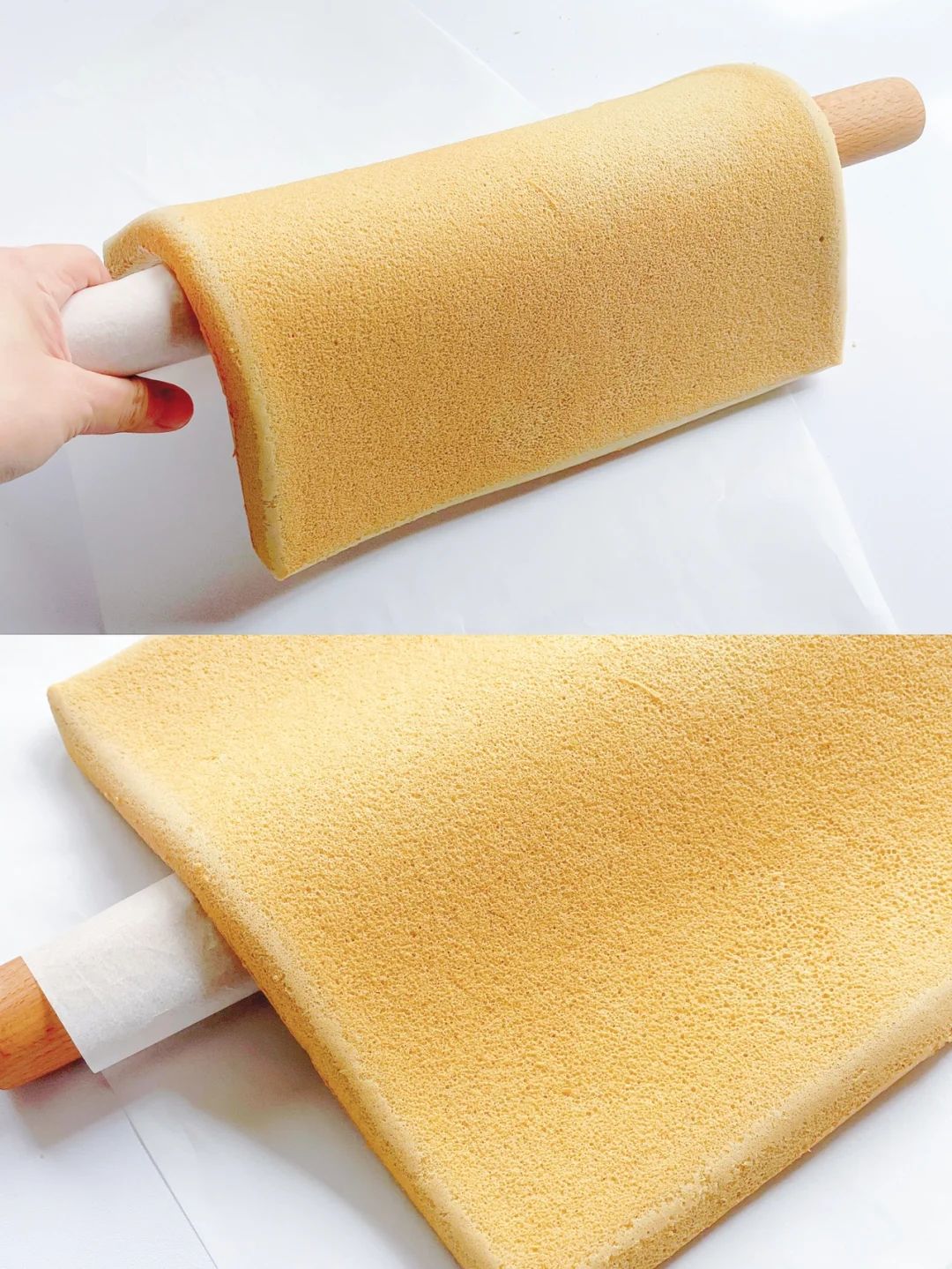 📎想要双毛巾面就出炉趁热覆盖油布晾凉再撕下,想要正卷就最后5分钟开热风固皮