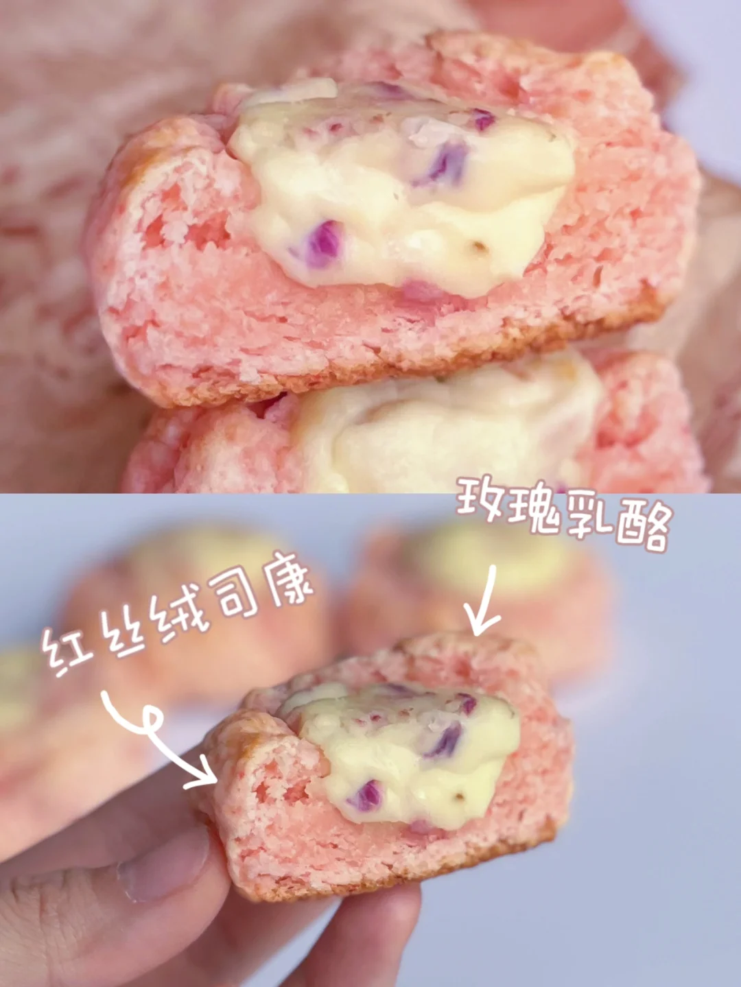 司康胚:低筋面粉120g|奶粉10g|泡打粉3g|盐1g|细砂糖30g|牛奶30g|淡奶油35g|黄油30g|红丝绒液2滴