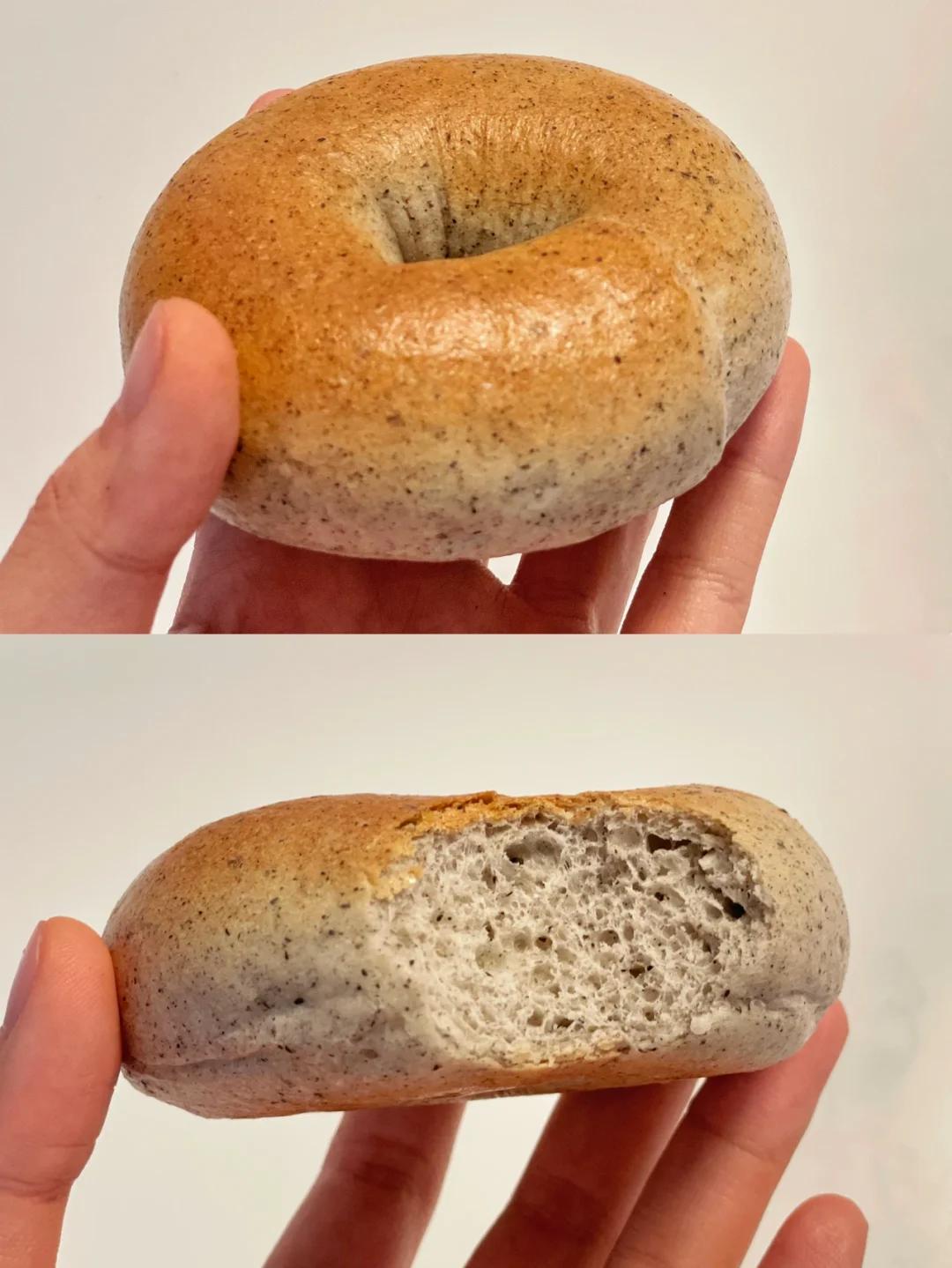 那来试试黑芝麻口味得无糖无油贝果吧🙋