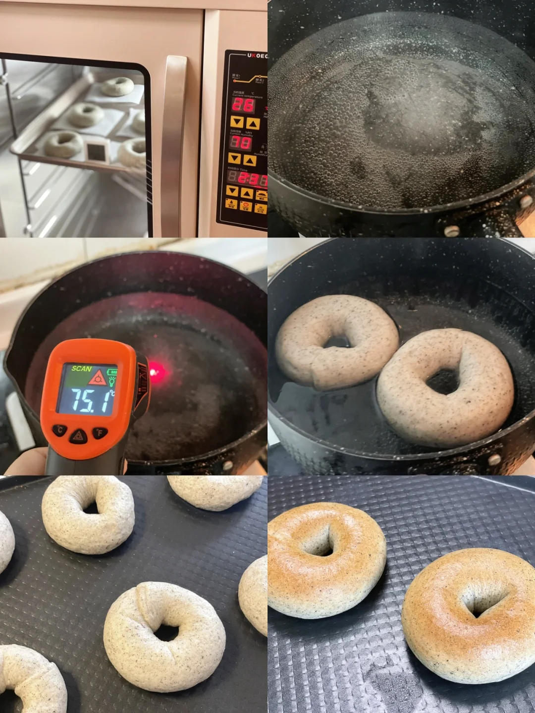 📎贝果煮水是为了糊化表面达到外脆内韧的口感并帮助上色,糖可被蜂蜜/红糖代替,并不会吸收水中的糖热量!糖水收集起来冷藏可保存2-3天~