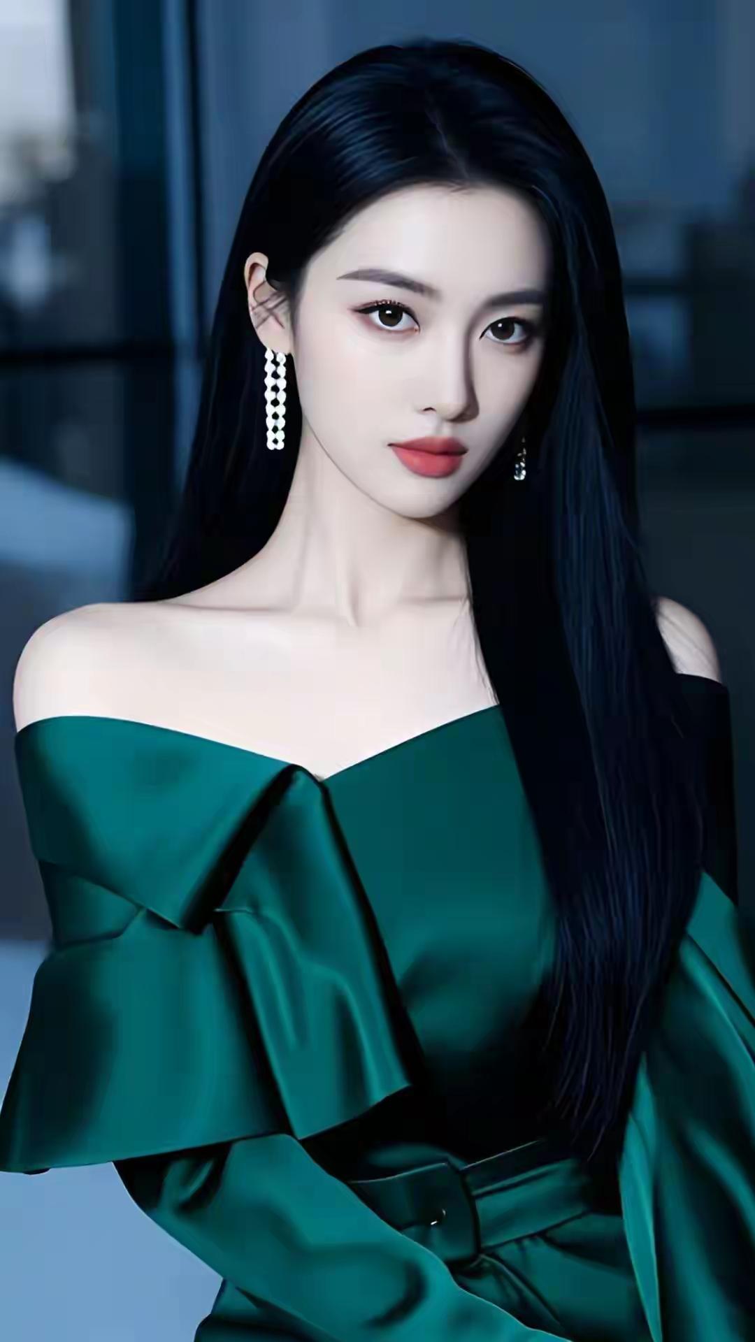 优雅绿裙,气质女神,红唇与黑发相映成辉,尽显迷人魅力!晒晒你亲手做的食物 买什么颜色的裙子温柔又好看呢?