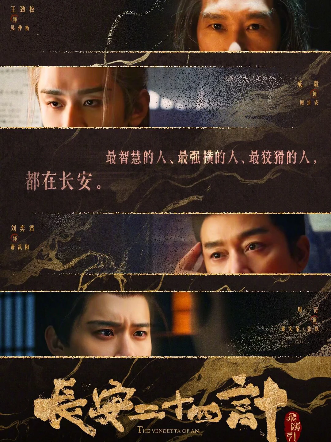 🎞️亮点:作为一部古装复仇爽剧,《长安二十四计》在保证类型爽感的同时,也把人物之间的拉扯与对撞推到了极致。剧中多线人物的群像交织,各自带着不同立场与秘密登场:有人一心复仇,有人盘算前程,有人宁愿以身犯险守住在意之人。谢淮安在追索真相的途中,一次次站在情义与仇恨、底线与代价的分岔口前做出选择;而与他对峙、周旋、暂时结盟的众人,同样在局势不断翻转中亮出各自狠招。