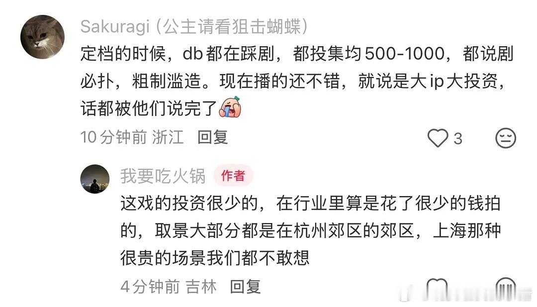 狙击蝴蝶工作人员发布,投资很小,3 天筹备了一部 90 天的电视剧,真的逆风翻盘