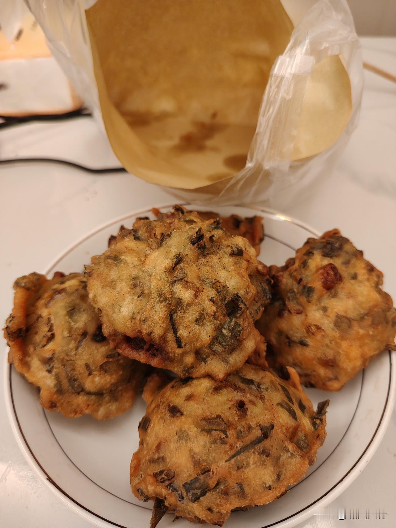 步行路过一路边摊,走过了,又转头走过去,顿时馋虫勾魂了啊。[捂脸][捂脸] 按我的习惯,下午三点后出门步行二三公里,漳州港此时不凉不热,正是锻炼好时候。 今天选择的路线是,围绕两个相邻小区走一圈,正门前是大道,后门这边街道临湖,用时在40分钟左右。 走至回程相邻小区的偏门口,有一路边摊,没太在意,走过了十几步,一股浓重香气随风袭来,脚步不由的停下,禁不住诱惑,又掉头走向摊位。 一位看着比我年龄稍大的阿姐,正用长长的筷子翻动油锅里炸制的吃食,馋虫勾魂了,必须买。阿姐是漳州本地人,住在附近小区,我推测应当是退休了清闲,把专长当做了一件事情、一个小生意来做。 阿姐炸制的食物叫“浮枣”,是漳州市云霄县陈岱镇的传统油炸小吃,用鲜蚝、猪肉搭配葱姜等佐料,因形似枣状漂浮油锅而得名,有60多年的历史了。 阿姐没有用模具,只用一把勺子制作,浮枣外观圆圆鼓鼓的、金黄色,香气四溢,看的我直咽口水。美食不可错过,3元一个,买了5个,吃起来咸香鲜美、外焦里嫩、滋味悠长,爱了爱了!解馋之时,口占一诗: 《咏浮枣》 金丸沸油翻,玉团糯香漫。 绽雪糖霜裹,甜津舌底宽。 烟火街巷暖,岁时箸频传。 百味藏乡井,一品是家山。 有人会说,最后一句,你“只把他乡当故乡”了,可谁又知我不是“此心安处是吾乡“呢?