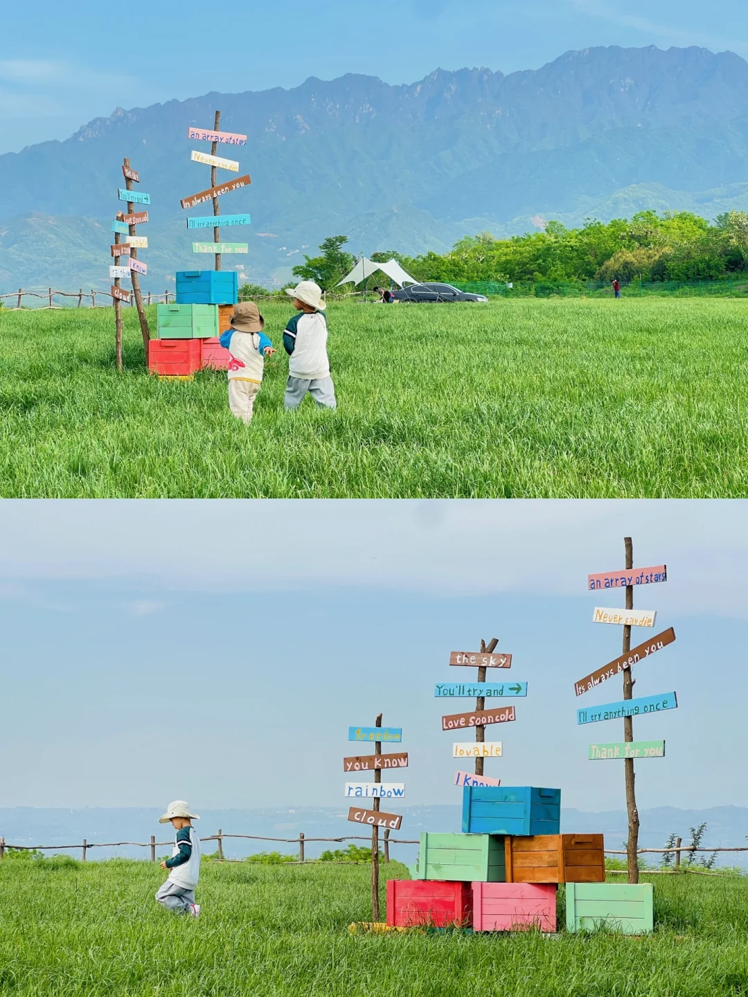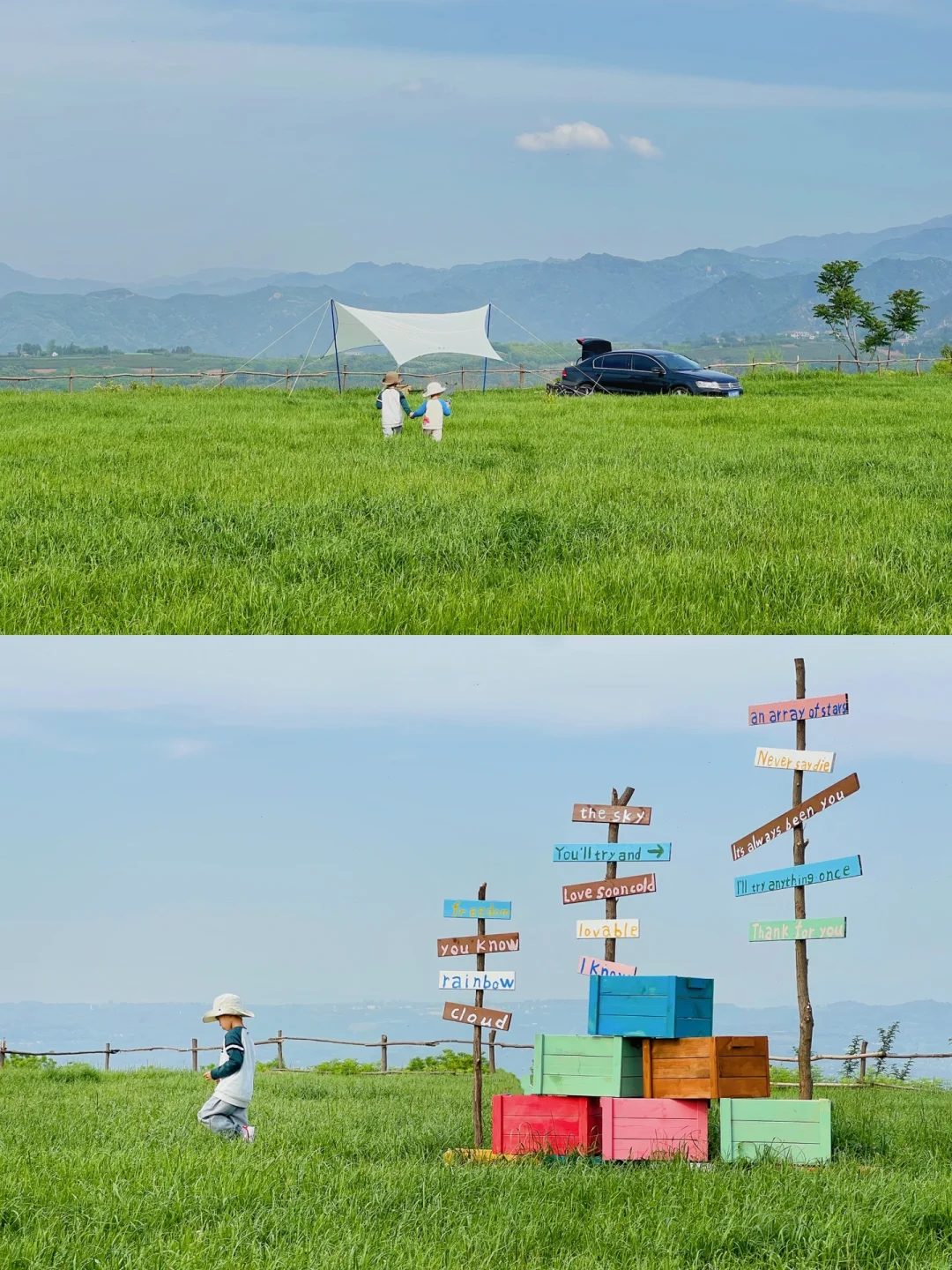 [向右R][向右R]蓝田一个秘境露营地,西安出发一小时。漫山星野营地。有着“小呼伦贝尔大草原”的带入感,在蓝田一座小山顶上,视野位置绝佳。小老板人超好,营地收费也实惠。五一还有营位,自带装备45/人可过夜。