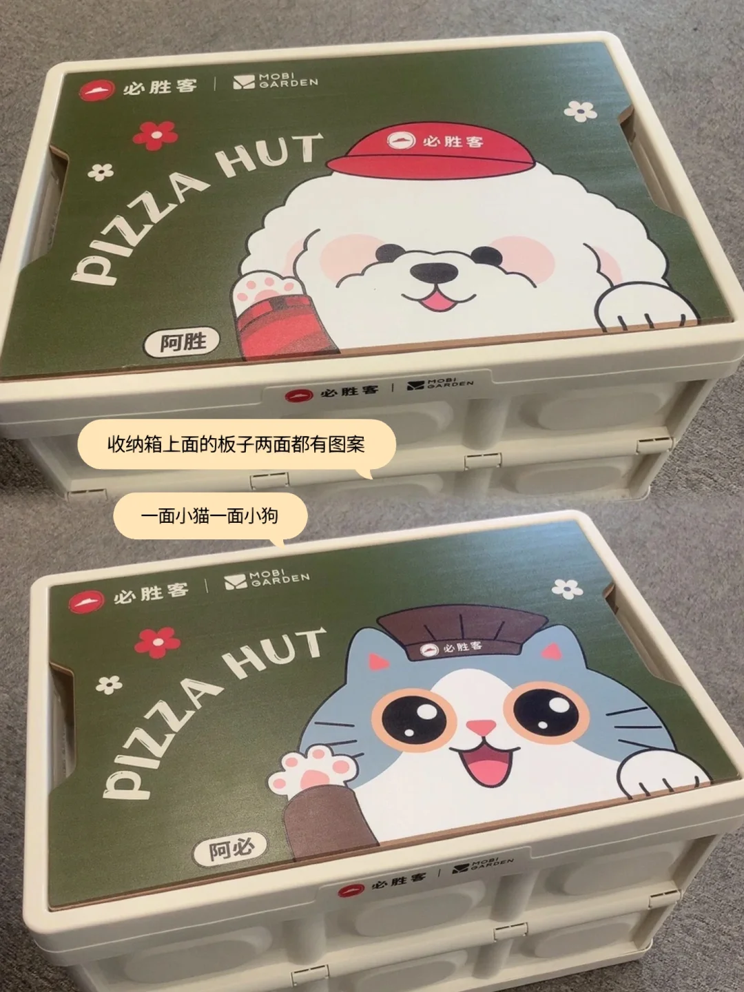 收纳箱上的木板正反都有图案,小猫小狗又奶又萌,小朋友好喜欢!直奔门店拿下!收纳箱容量很大,可以折叠起来,小巧便携。户外装个水果,收纳气罐,碗筷食物等小东西都非常不错。