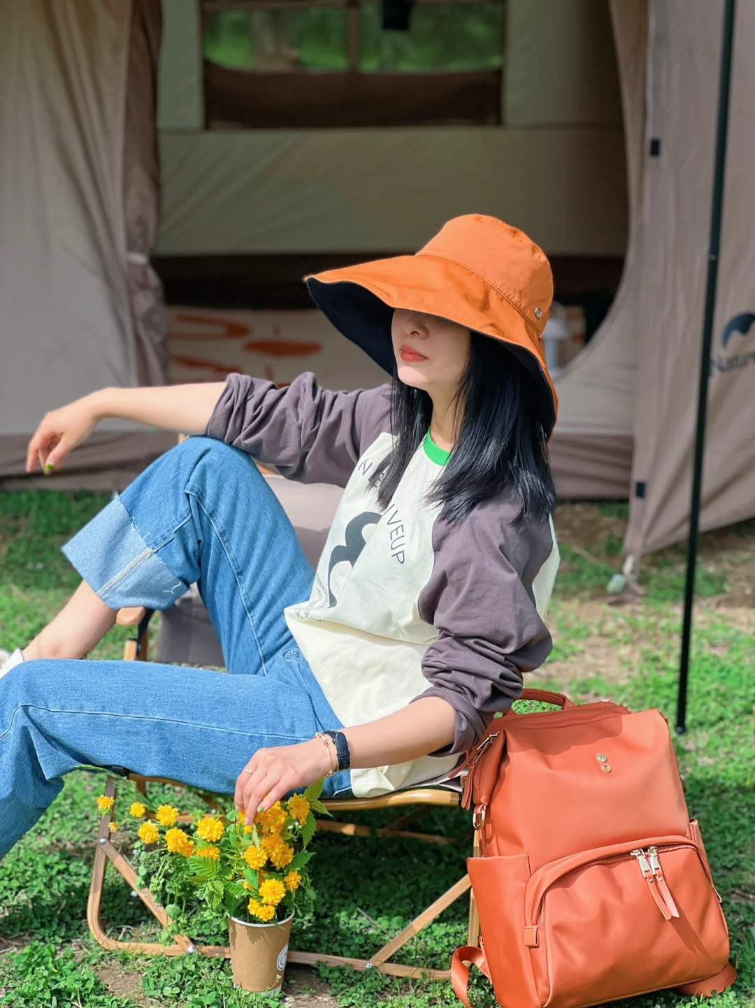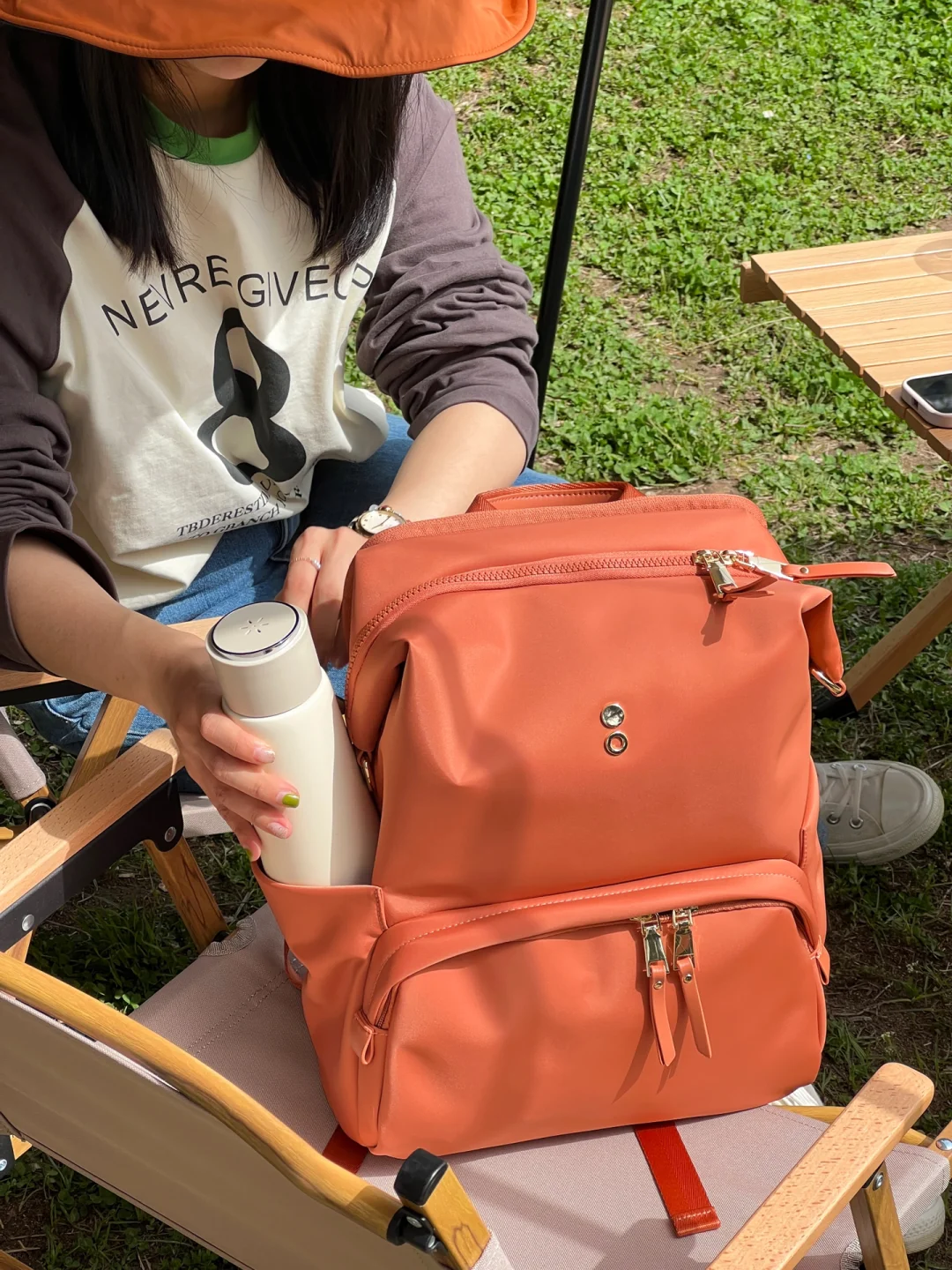 春夏就喜欢带有色彩的东西,家里大多是黑色系包包,一直想买个亮色系包,选了很久特别喜欢这个爱可乐双肩包,这个橙色特别好看。为了配包还买了同色系的帽子,搭配的衣服。包包上班外出背上都挺合适,13寸电脑笔记本可以装下哈。