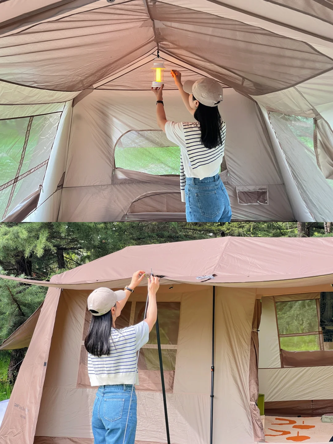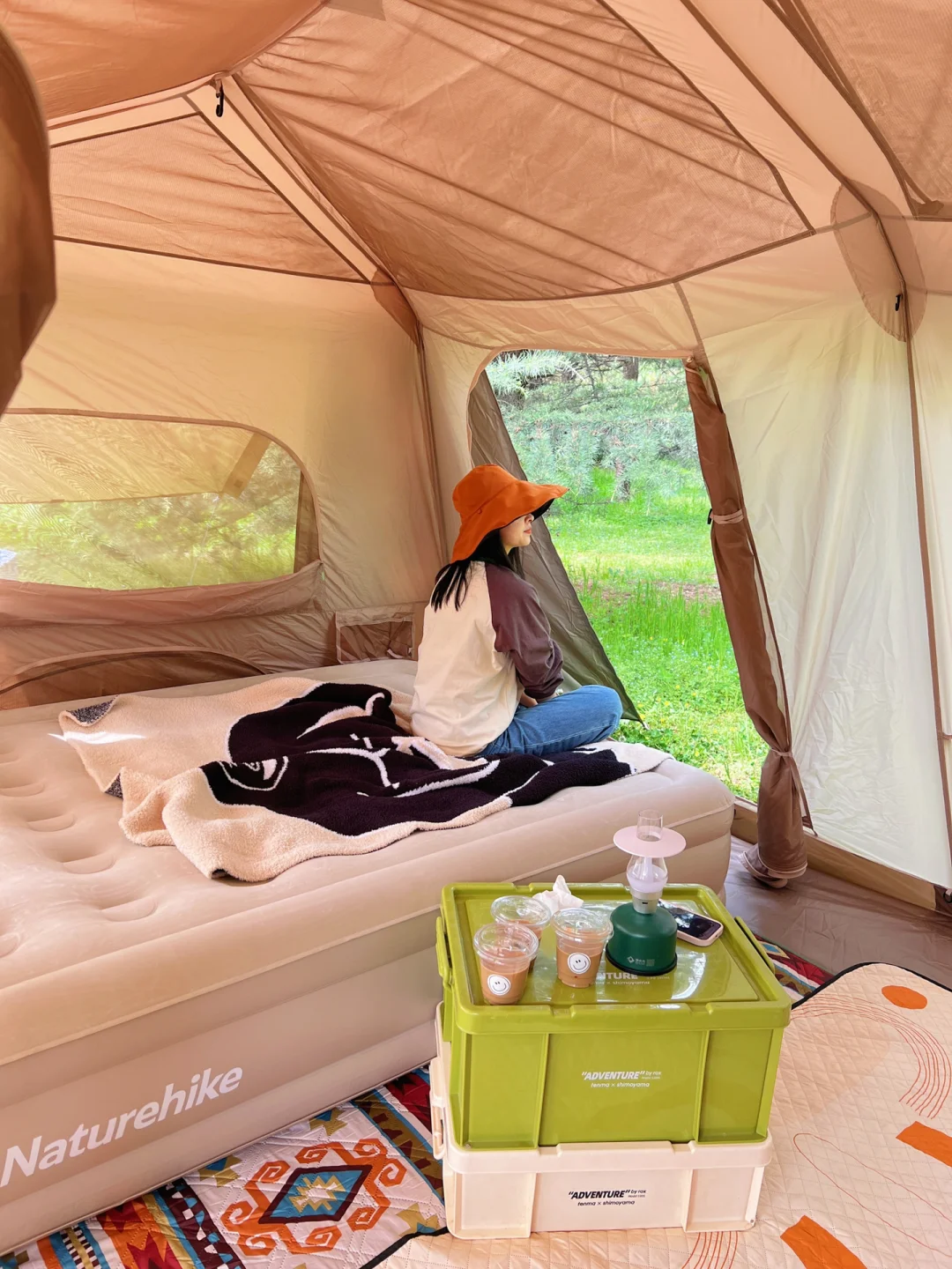 内里13平米的大空间,放下充气床垫依旧很宽敞,躺着露营更舒适~