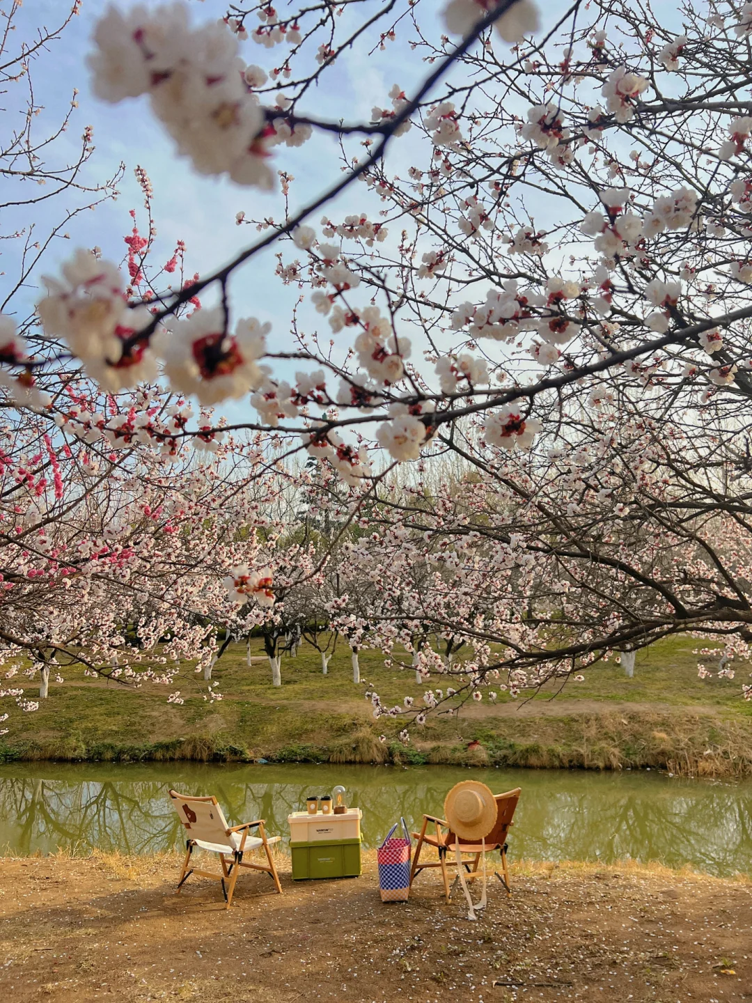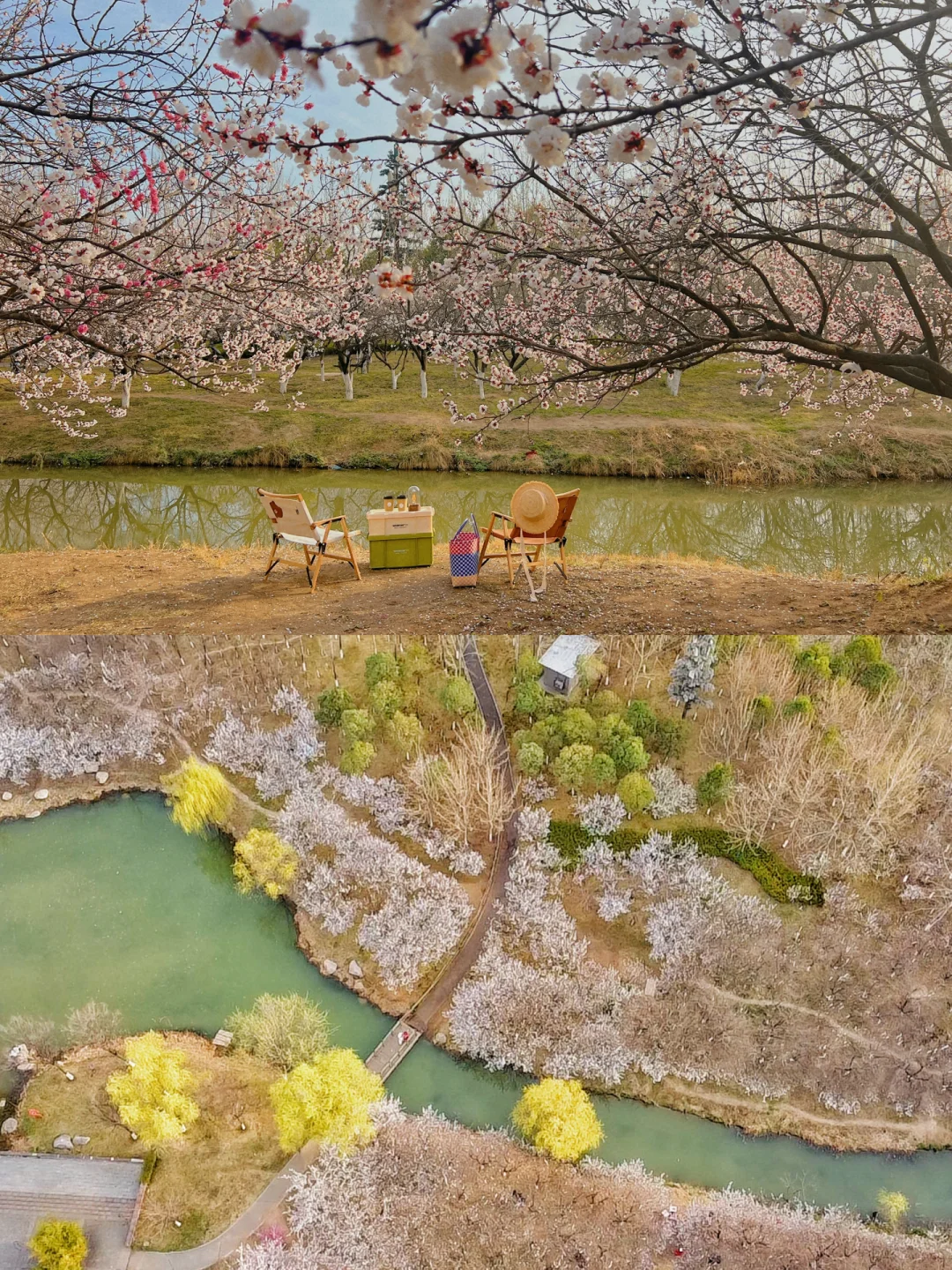 北郊出发才20分钟,这个地方拍照这么美,我真的惊叹了。。为啥要挤沣东梅园,这里不香吗。杏花林的周围小河环绕,这不就是我想象春天的露营地吗?