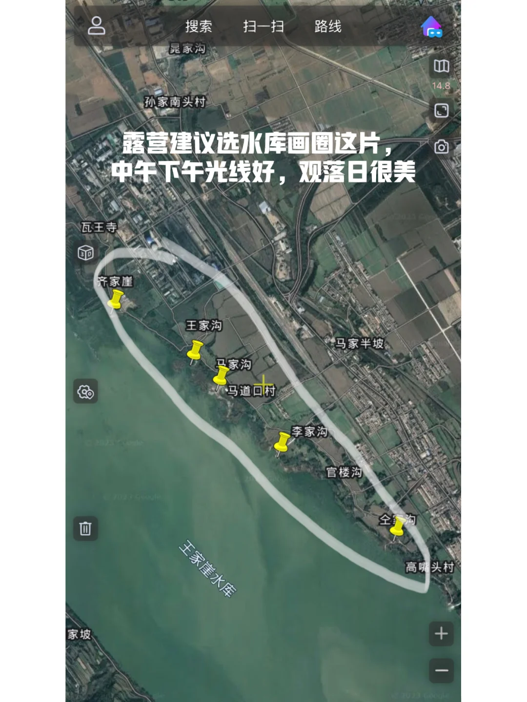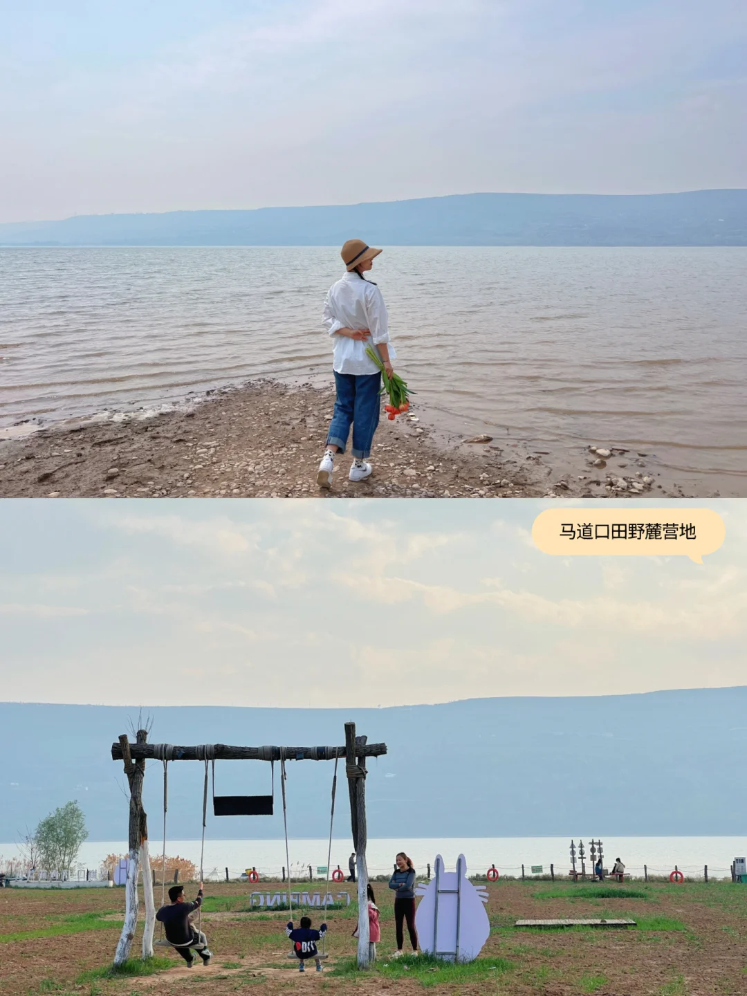 水库附近有两个露营地,[拔草R]一个是马道口田野麓营地,这个是在水边的露营地,风景很美。[拔草R]另一个是钛途趣野营地,这个是在塬上的露营地,地势高,可以俯瞰整个王家崖水库,视野特别棒。两个营地直接导航名字即可。