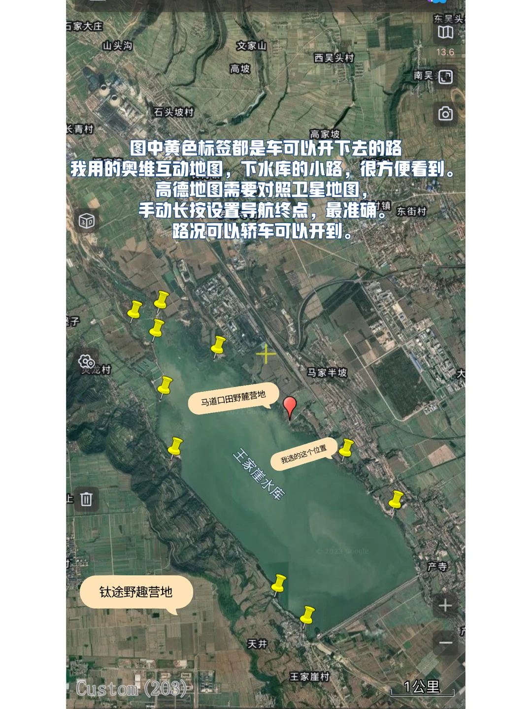[向右R][向右R]地址:宝鸡凤翔 王家崖水库。一路路况好,轿车可开到水边,房车也可以到达。具体10个车可以开到的位置,在最后地图。可烧烤 露营 钓鱼全能,人也很少。适合安排两天一夜。