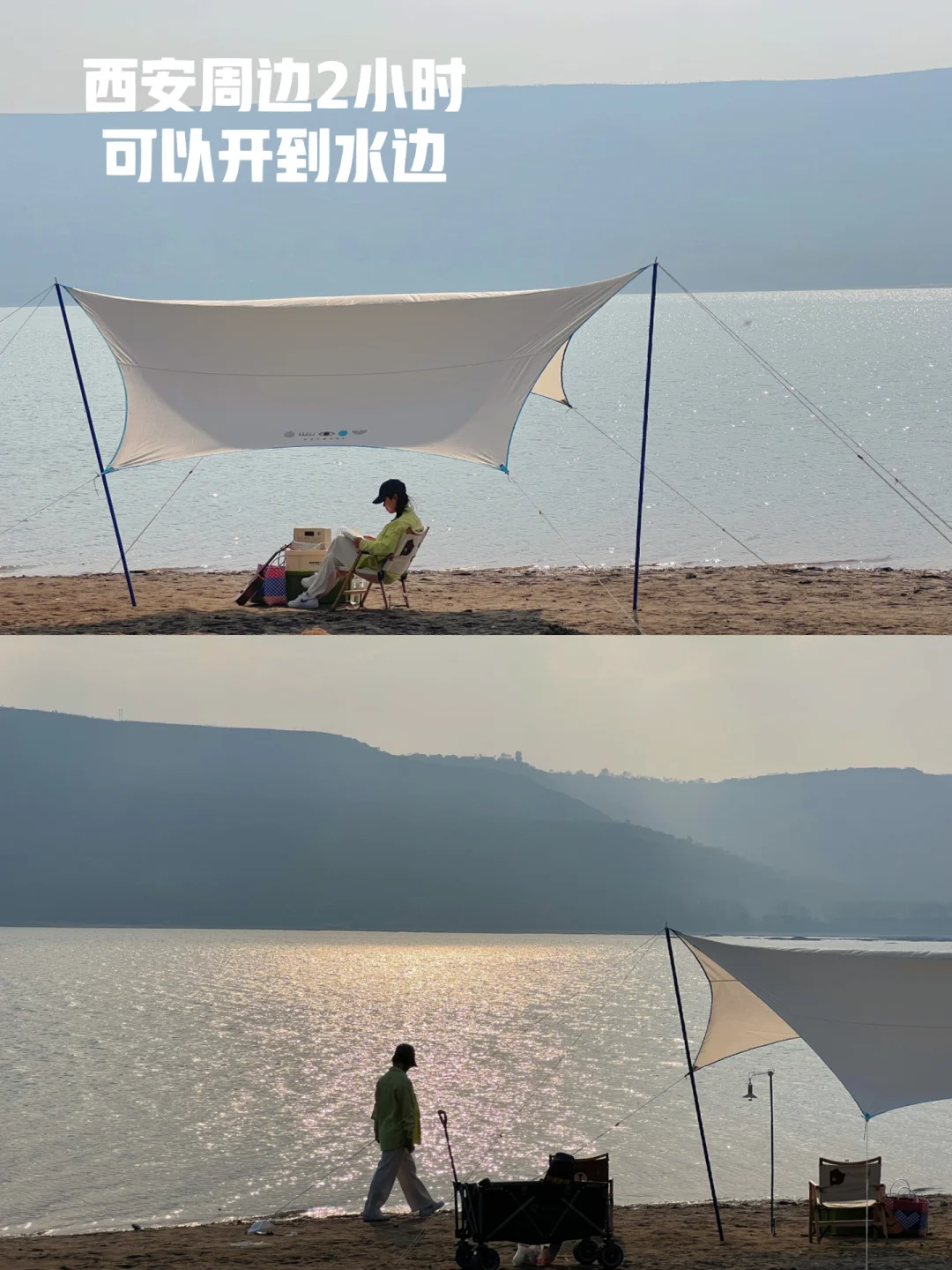 西安出发2小时,宝鸡凤翔有一个水库太神仙了,竟然至少有10处车可以开到水边的位置。西安周边2小时内的范围真的很少见。